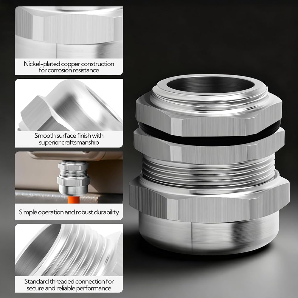 Material: The cable gland is made of durable, corrosion-resistant nickel-plated copper for long-term use