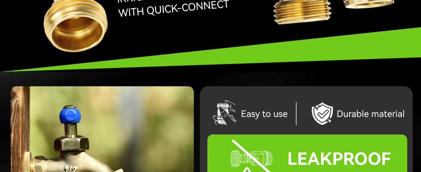 • 【توصيل سريع بيد واحدة】سهل التوصيل والفصل بيد واحدة. قم بتبديل أجهزة الري على الفور دون إتلاف الخيوط الناتجة عن الشد المتكرر.