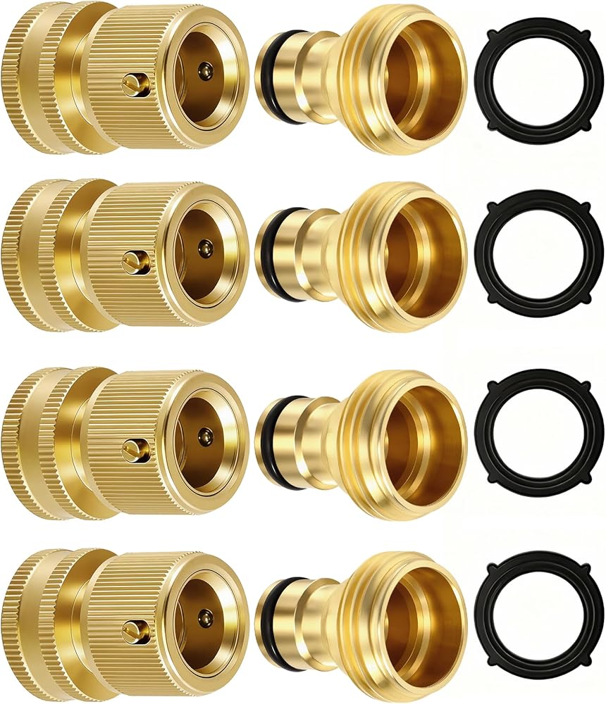 • 【مجموعة نحاسية كاملة】تتضمن 2 أنثى + 2 موصلات نحاسية ذكر و4 غسالات. يعمل مع جميع خراطيم الحديقة القياسية والصنابير والفوهات والرشاشات باستخدام وصلات GHT العالمية مقاس 3/4 بوصة.