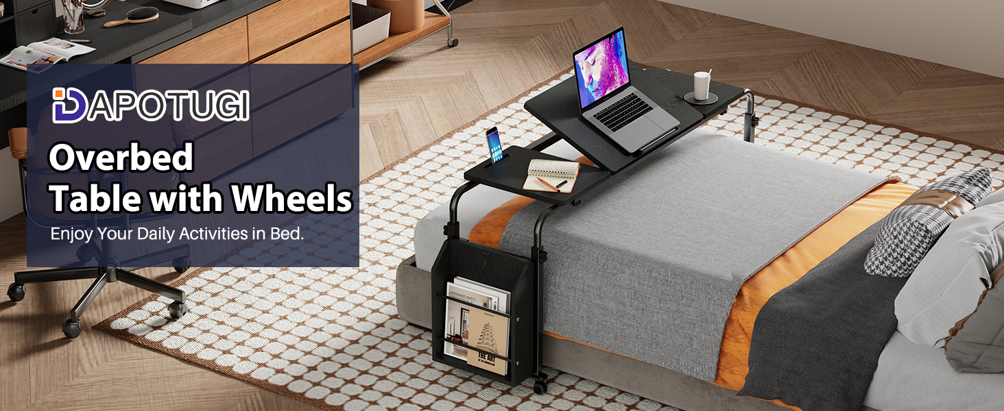 • تصميم فريد من نوعه لسطح الطاولة القابل للإمالة: مكتب DAPOTUGI فوق السرير، على عكس طاولات السرير التقليدية، تتميز هذه الطاولة فوق السرير بتعديل زاوية 6 أوضاع (من مسطح إلى 65 درجة). يمنع الواقي المدمج المضاد للانزلاق بشكل فعال أجهزة الكمبيوتر المحمولة والكتب وغيرها من العناصر من الانزلاق. سواء كنت تعمل أو تقرأ أو تنشئ أعمالًا فنية، يمكنك بسهولة العثور على زاوية رؤية مريحة للاستمتاع بلحظات الاسترخاء في المنزل