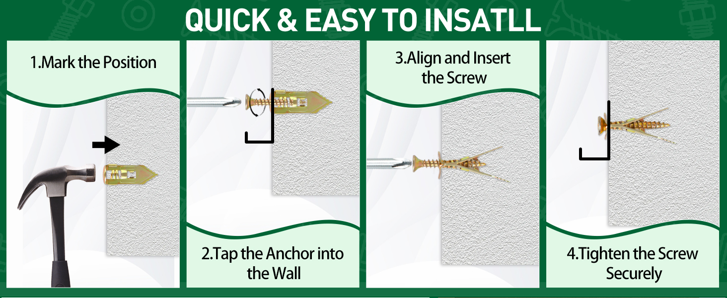 𝐑𝐞𝐮𝐬𝐚𝐛𝐥𝐞 𝐋𝐨𝐰 𝐖𝐚𝐥𝐥 𝐃𝐚𝐦𝐚𝐠𝐞: عمليات إعادة ترتيب أسهل مع إصلاحات أقل: ما عليك سوى فك براغي الأجهزة وترك المرساة في مكانها لإعادة استخدامها. تلف السطح السفلي مقارنة بالمقابس البلاستيكية؛ تساعد الصور المرئية الواضحة خطوة بخطوة على الحصول على نتيجة موثوقة في المرة الأولى — جدران نظيفة، ومظهر أنيق، وحوامل موثوقة.