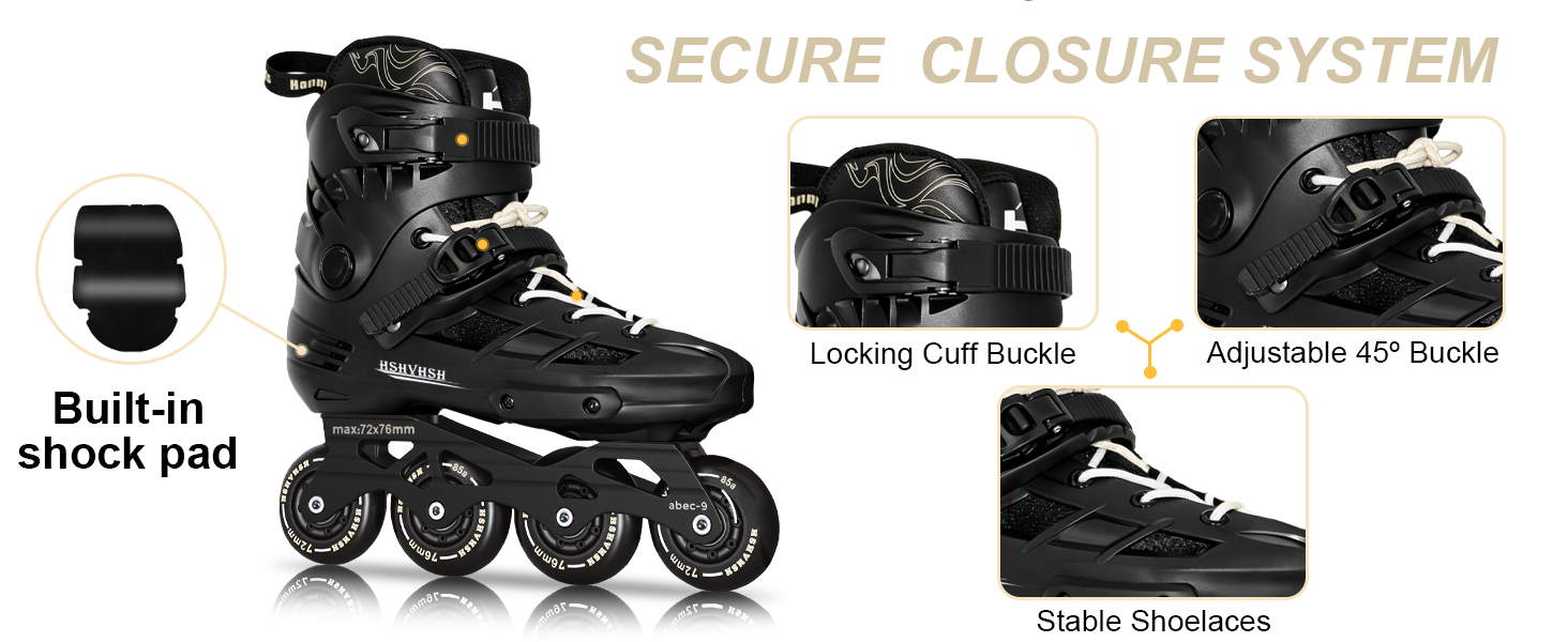 【تصميم مسامي وقابل للفصل وقابل للغسل】تتميز الزلاجات الدوارة بجزء علوي شبكي مسامي وبطانة داخلية ناعمة قابلة للإزالة. البطانة الصديقة للبشرة جيدة التهوية وقابلة للغسل ومريحة، وتمنع رائحة القدم بشكل فعال، مما يمنحك تجربة تزلج ممتعة.