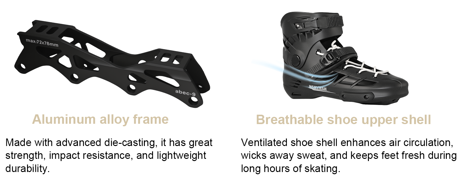 【هيكل إطار متين وخفيف الوزن】تأتي الزلاجات المضمنة للبالغين بإطار سميك من سبائك الألومنيوم الصلب وغطاء من البولي بروبيلين المصبوب المدمج. توفر توازنًا مثاليًا بين الخفة والسرعة أثناء التزلج، مما يقلل بشكل فعال من إجهاد القدم أثناء جلسات التزلج الطويلة.