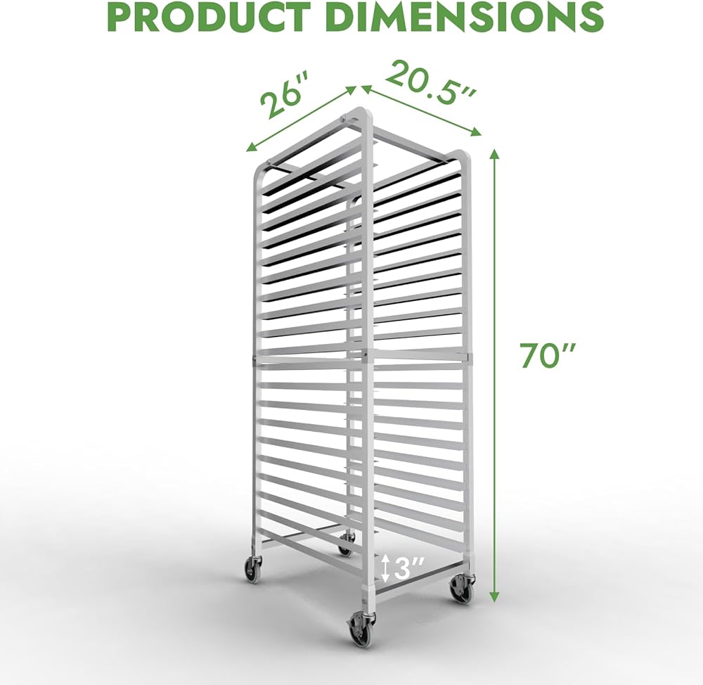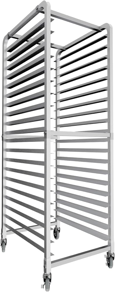 تصميم موفر للمساحة: قم بزيادة مساحة مطبخك إلى أقصى حد من خلال التصميم الرأسي للرفوف لدينا. تتيح لك التكوينات المكونة من 20 طبقة تحقيق أقصى استفادة من المساحة الرأسية لمطبخك مع استيعاب كمية كبيرة من العناصر المخبوزة.