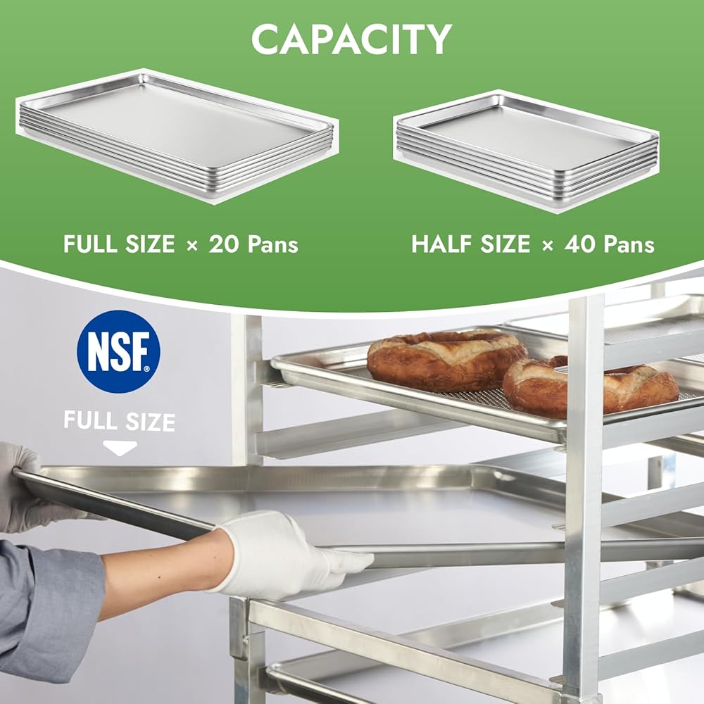 جودة معتمدة من NSF: ارفع مطبخك بثقة باستخدام رفوف المخبوزات لدينا، معتمدة من NSF لتلبية أعلى معايير الجودة والسلامة. كن مطمئنًا، فقد تم تصميم هذه الرفوف لتقديم أداء استثنائي في البيئات الاحترافية.