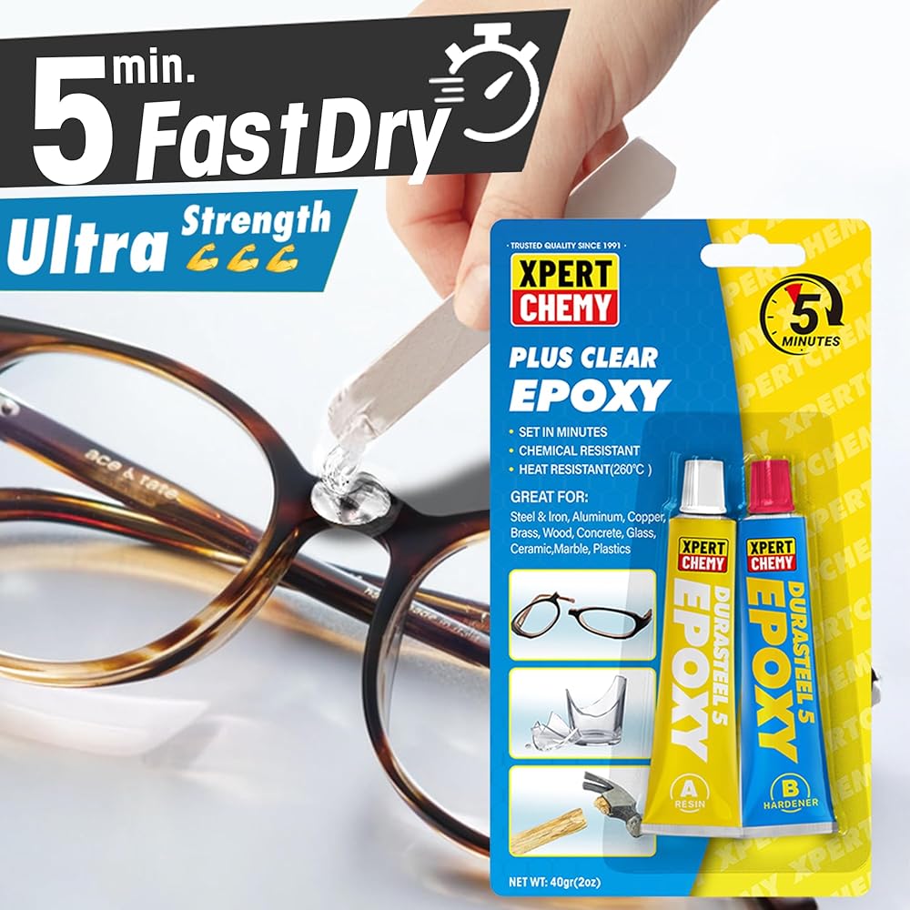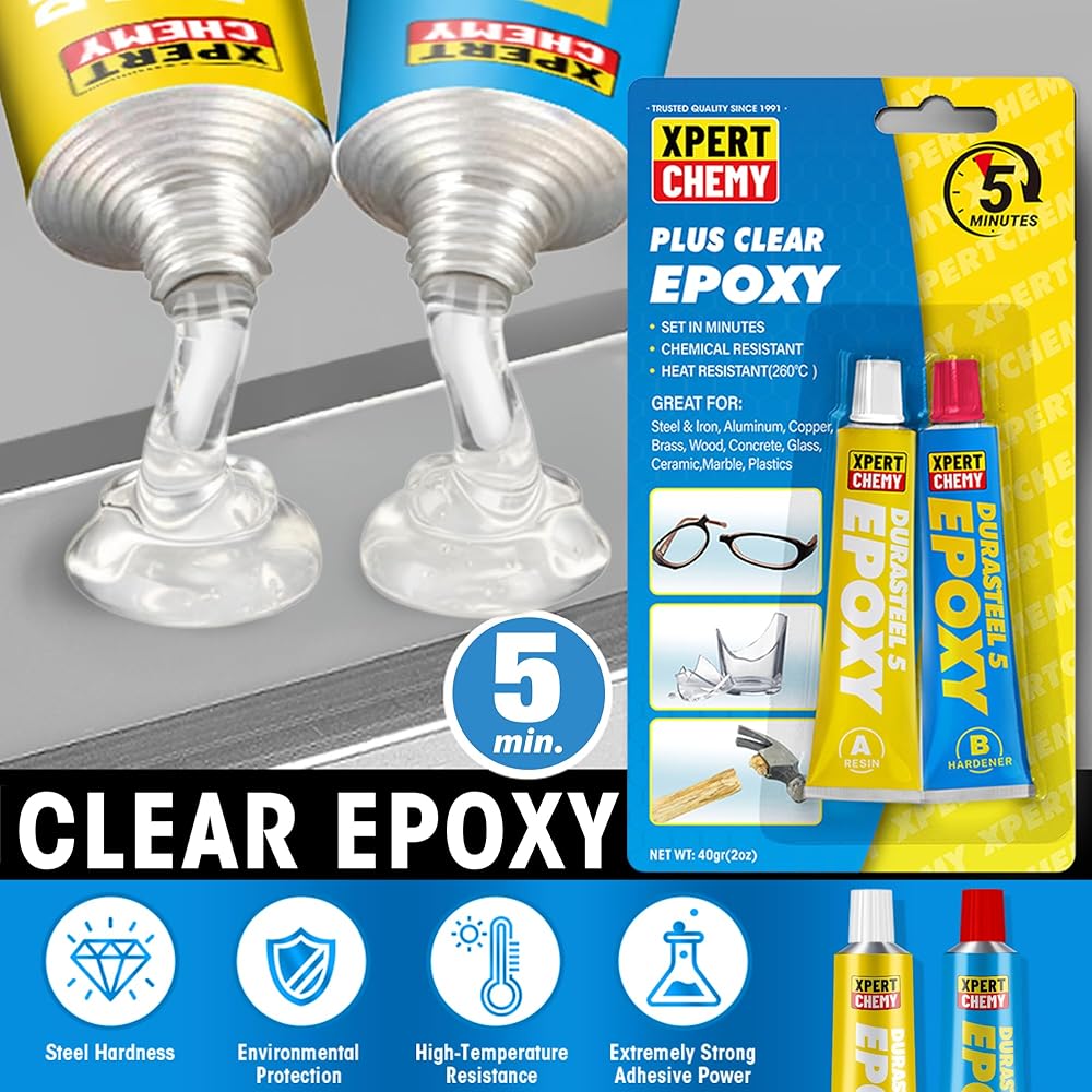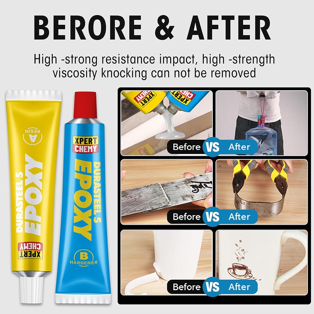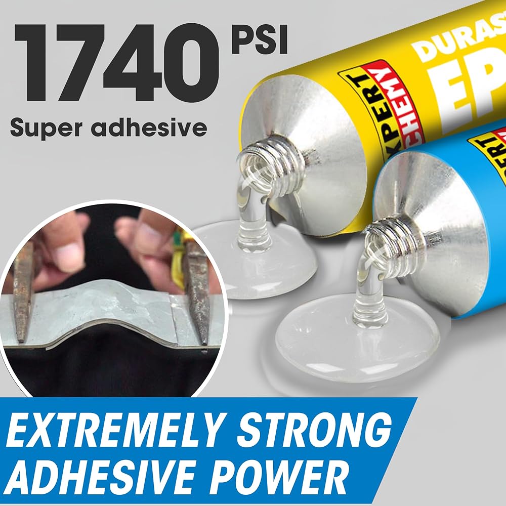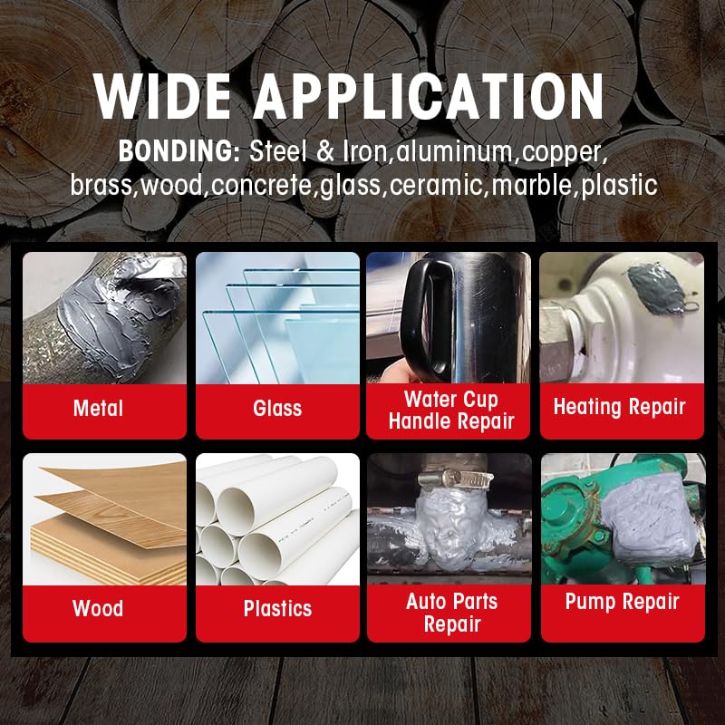 Extensive Compatibility: Versatile epoxy can be used as an adhesive for a wide range of materials like Metal, Most Plastics, PVC, Wood, Concrete, Ceramic & Tile, Fiberglass and Glass to repair machinery, tools, pipes, and more.