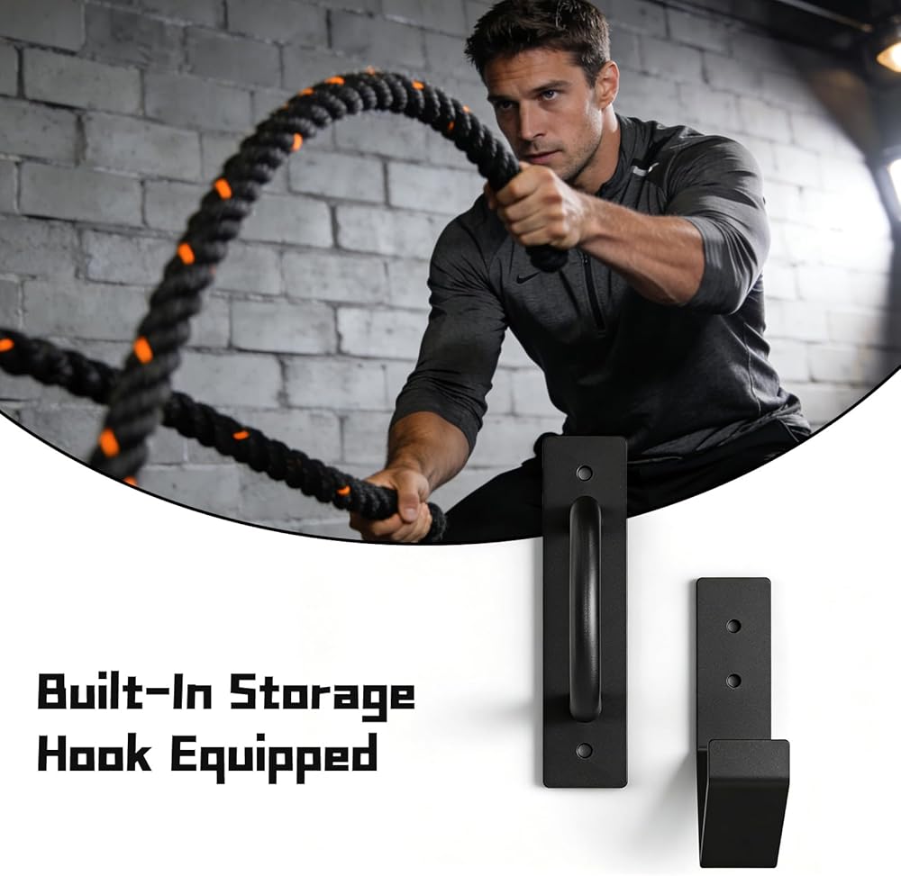 Built-In Storage Hook Equipped with a convenient storage hook, the wall mount keeps your battle ropes organized when not in use. Say goodbye to tangled ropes and cluttered workout areas, optimizing your gym space efficiently.
