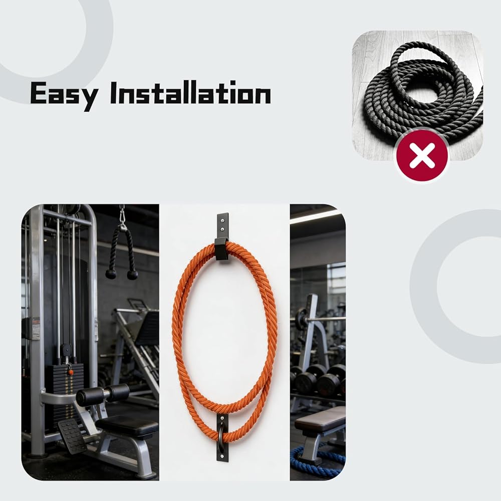 Easy Installation The kit includes all necessary hardware for quick and hassle-free setup on walls or ceilings. Follow the simple instructions to secure the anchor firmly, allowing you to start your battle ropes workouts in no time.