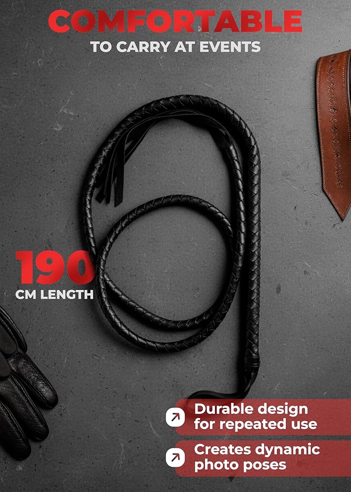 مصنوع من الجلد الصناعي، هذا التصميم المرن الطويل يوفر استجابة سلسة وجاذبية بصرية، مما يجعله خيارًا موثوقًا للراكبين الذين يريدون تحكمًا ثابتًا وتصميمًا كلاسيكيًا، مع مزج السوط الأسود بسلاسة مع اللمسة التقليدية.