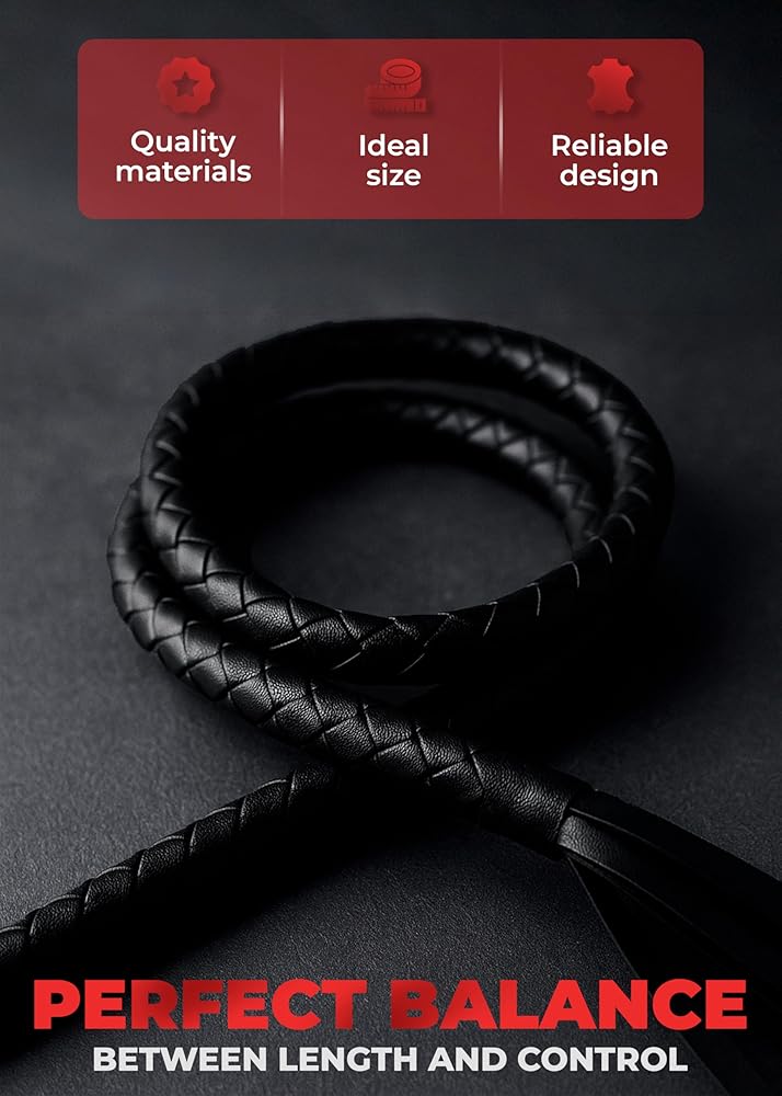 مع طول ممتد يبلغ 75 بوصة، يدعم التصميم التواصل المحسن والإشارات الدقيقة أثناء العمل المسطح وروتين التدريب، مما يجعله مناسبًا بشكل خاص كسوط ترويض دقيق وسريع الاستجابة.