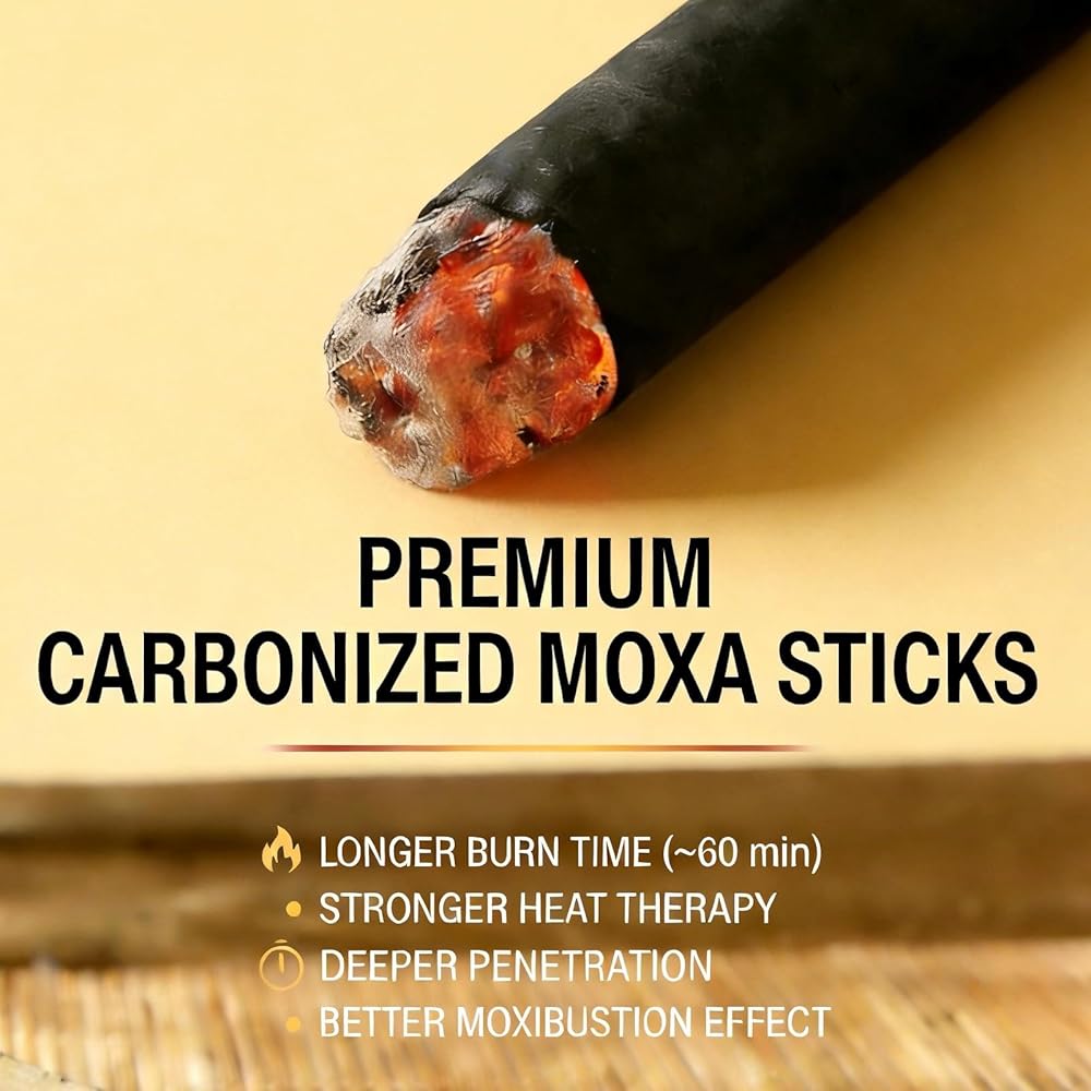 • 3. Safe & User-Friendly Smokeless Moxa Design Designed with safety in mind, our smokeless moxa sticks produce no heavy smoke, avoiding discomfort in enclosed spaces. The carbonized material ensures the moxa stick only extinguishes in oxygen-poor environments, reducing fire risks. Maintain a 3-5cm distance from the skin during use to prevent burns—our moxa sticks for moxibustion prioritize comfort and safety for every user.