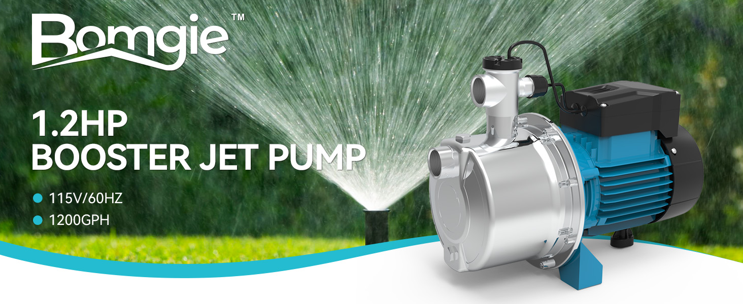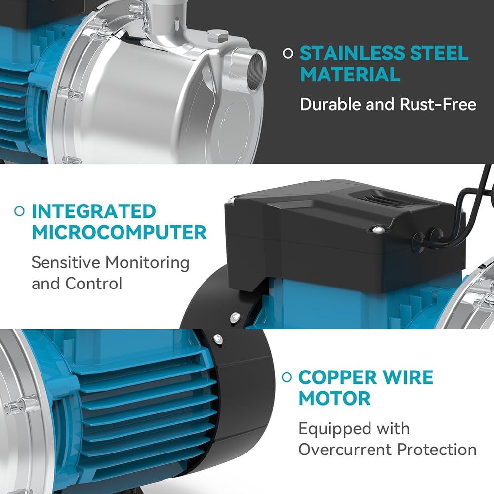 مضخة نفاثة معززة للتحكم الذكي بقوة 1.2 حصان، مضخة بئر ضحلة من الفولاذ المقاوم للصدأ بقوة 1200 جالون في الساعة 115 فولت مع تشغيل/إيقاف تلقائي للمنزل والحديقة وري المزرعة وأنظمة الرش، وضغط المياه المعزز