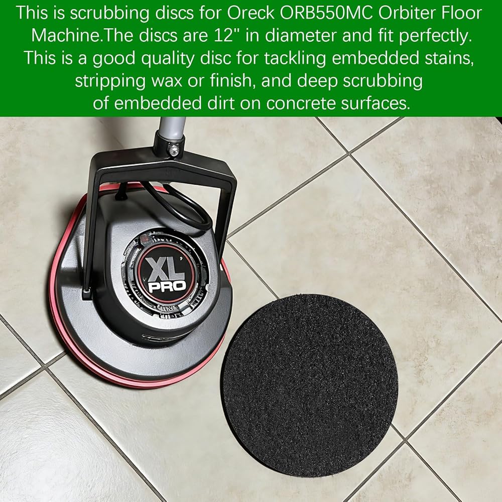 12"Floor Scrubber Pads for Oreck ORB550MC Orbiter Floor Machine,Black Disc for Oreck ORB550MC Floor Machine,The pads fit and attach well to machine.Polishing scrubbing pads 437.071 for tackling wmbedded stains, dirt,stripping wax or finish,These black discs for moderate scrubbing without damaging the floor surface and for stripping light finishes. They are the most commonly used heavy cleaning pads.