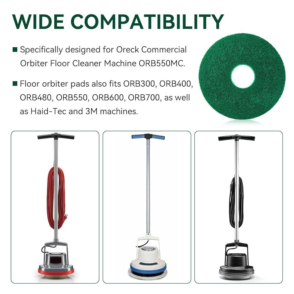 • 【Wide Compatibility】12" cleaning orbiter pads specifically designed for Oreck Commercial Orbiter Floor Cleaner Machine ORB550MC, this commercial floor scrubber pad also fits ORB300, ORB400, ORB480, ORB550, ORB600, ORB700, as well as Haid-Tec and 3M machines. A reliable choice for floor cleaning and polishing.
