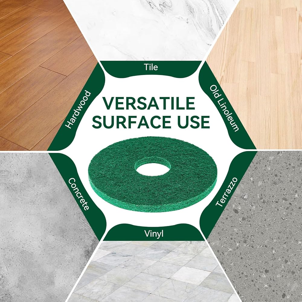 • 【Versatile Surface Use】Floor orbiter pads effectively cleans and polishes tile, hardwood, old linoleum, unfinished concrete, terrazzo, and vinyl. Gently removes grime and coatings from worn or uneven surfaces without causing damage.