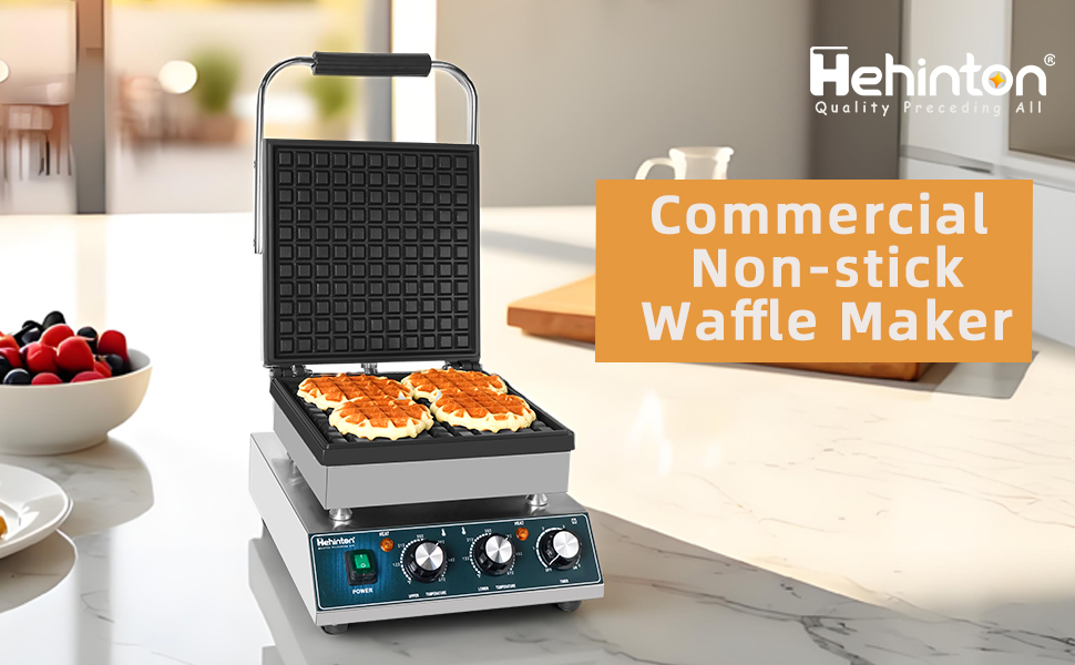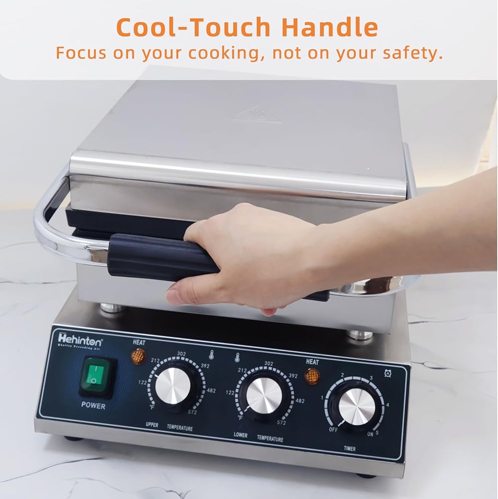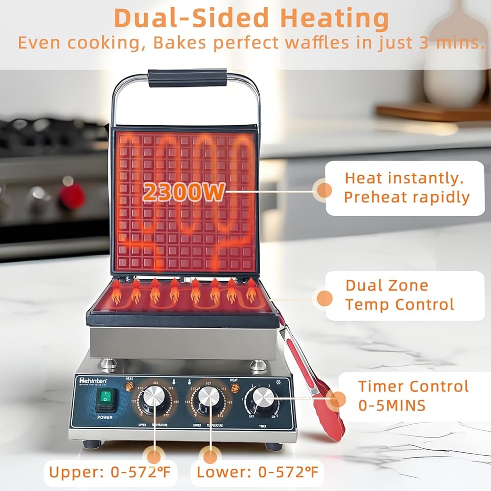 صانع الوافل البلجيكي التجاري من Hehinton®، صانع الوافل الكهربائي بقدرة 110 فولت 2300 وات، تحكم مزدوج في درجة الحرارة، منطقة طهي 11.4 بوصة × 11.4 بوصة، مكواة الوافل مع ألواح غير لاصقة لشاحنات الطعام والمقاهي والاستخدام المنزلي