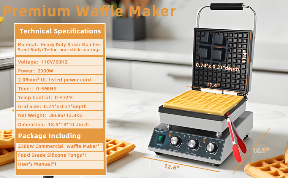 🟠 【فولاذ مقاوم للصدأ عالي التحمل وتسخين سريع 2300 وات】 صانع الوافل البلجيكي من الفولاذ المقاوم للصدأ شديد التحمل بقوة 2300 وات! مصممة لتدوم لسنوات؛ القوة الكهربائية العالية تمكن التسخين الفوري والتسخين السريع. يقوم بطهي الفطائر البلجيكية الاحترافية بكفاءة - وهو مثالي لأعمال الوافل أو وجبات الإفطار أو الحفلات العائلية.