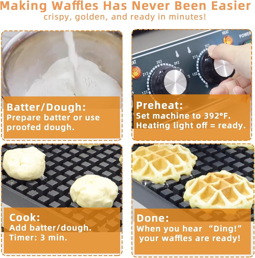 🟠 【مؤقت لمدة 5 دقائق، فطائر الوافل بدون مجهود】احصل على فطائر بلجيكية مثالية مع هذا المؤقت، الذي يتميز بتنبيه تلقائي "Ding". توفر المقابض المقاومة للحرارة وتصميم اللوحة المريح استخدامًا آمنًا ومريحًا لتجربة طهي مبهجة.