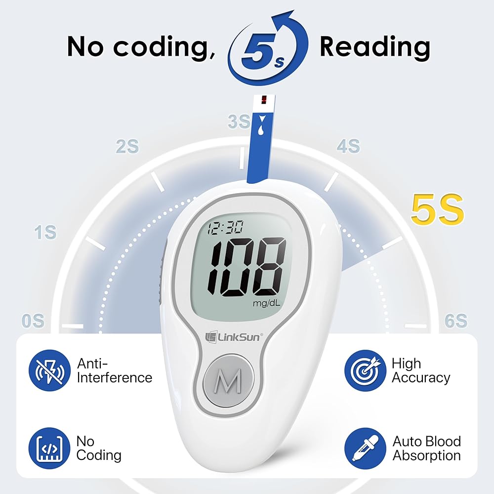 • اختبار دقيق وموثوق: يعتمد جهاز قياس السكر في الدم LinkSun G-425-3 تقنية الكشف والإنتاج المتقدمة لتوفير نتائج أكثر دقة وموثوقية. تصل دقته إلى ±12%، ويتوافق مع معيار ISO 15197:2013، ولم يتم سحبه من السوق خلال العشرين عامًا الماضية