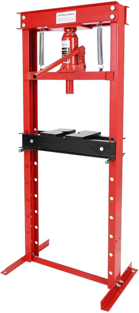 H-Frame Garage Floor Adjustable Shop Bearing Press with Stamping Plates to Bend, Straighten, Or Press Parts, Install Bearings & U-Joints