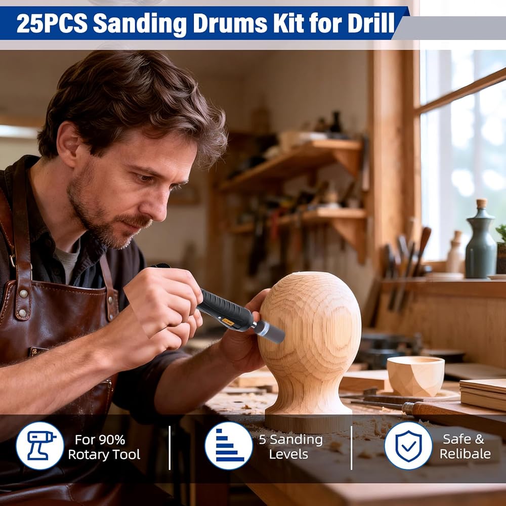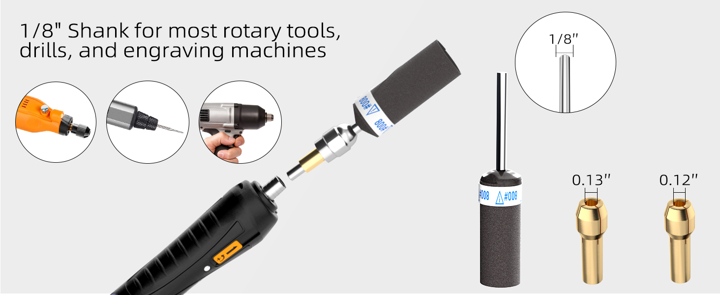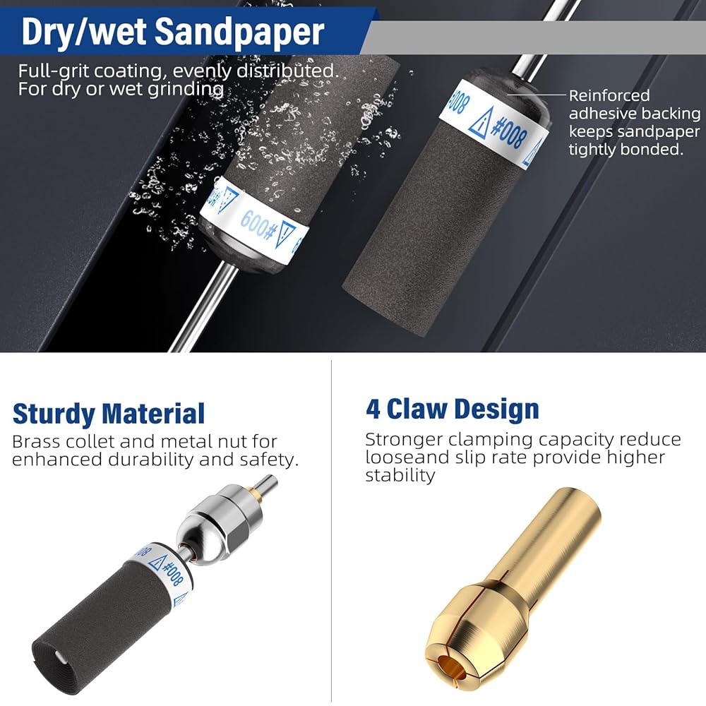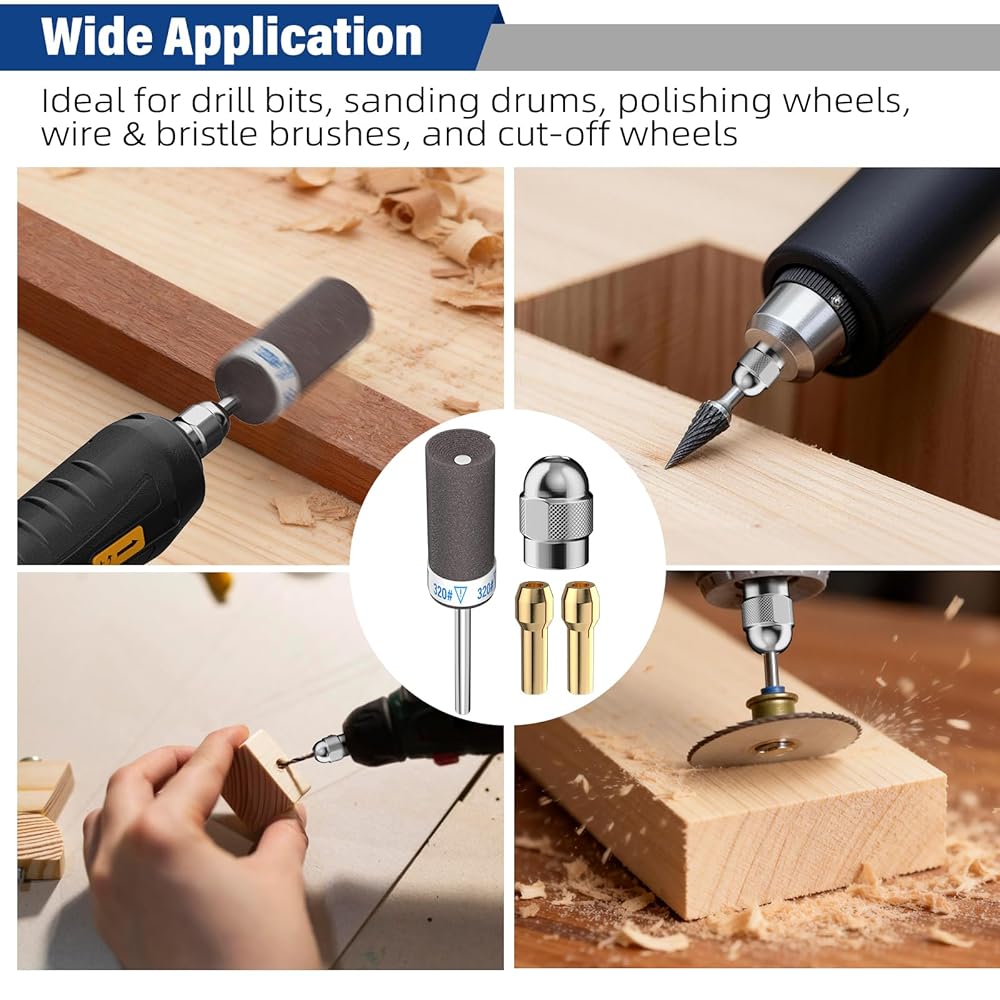 مجموعة قيمة وملاءمة عالمية - تتضمن 20 أسطوانة صنفرة: 240# (4 قطع)، 320# (4 قطع)، 400# (4 قطع)، 600# (4 قطع)، 800# (4 قطع). ساق قياسية مقاس 1/8 بوصة تناسب معظم أدوات Dremel الدوارة والمثاقب الصغيرة والنقاشين. يتضمن أيضًا صامولة فضية إضافية وأطواق نحاسية من أجل محاذاة آمنة. السرعة الموصى بها: 5,000 دورة في الدقيقة.