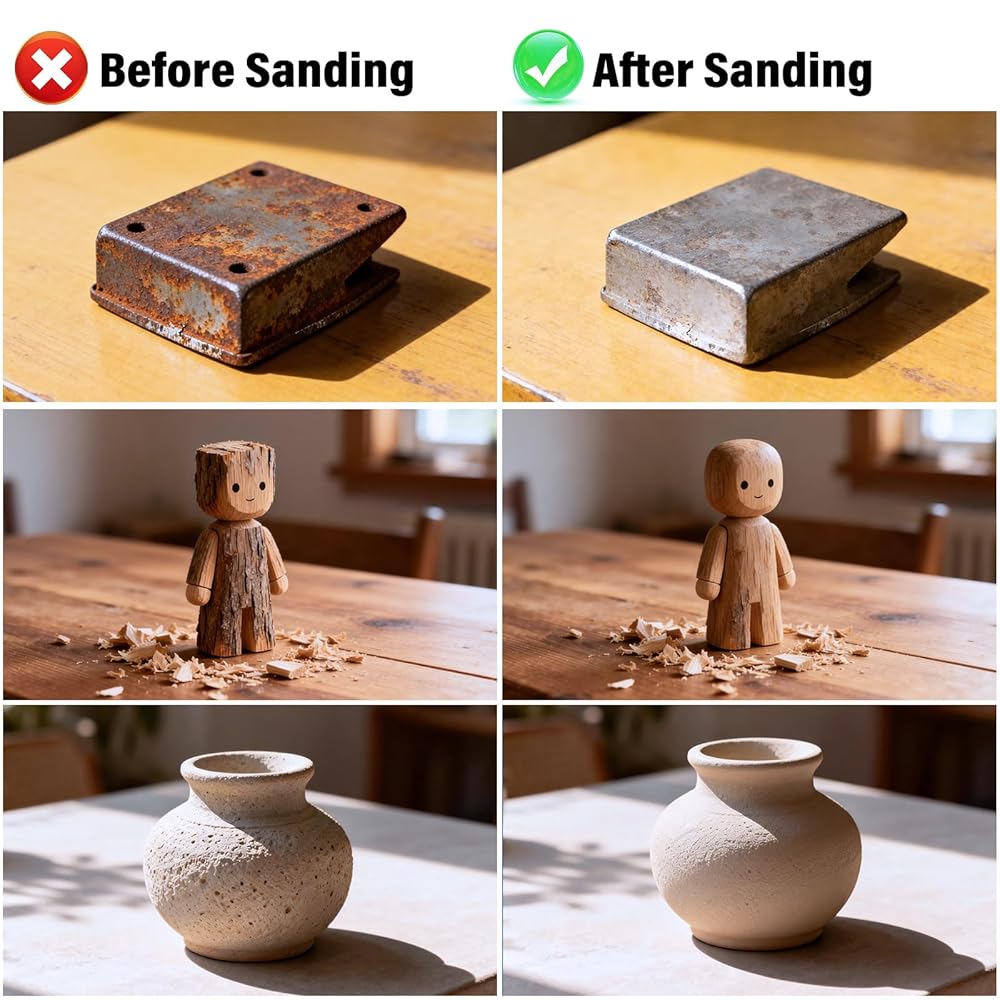 مادة كاشطة فاخرة - مصنوعة من حبيبات كربيد السيليكون عالية الجودة مع توزيع موحد للحبوب وربط قوي. مقاوم للتآكل، ومضاد للانسداد، ويدوم طويلاً، ويوفر صنفرة ناعمة ومستقرة دون تساقط أو تمزق. عند ارتدائها، ما عليك سوى تمزيق السطح المستخدم لكشف طبقة صنفرة جديدة.