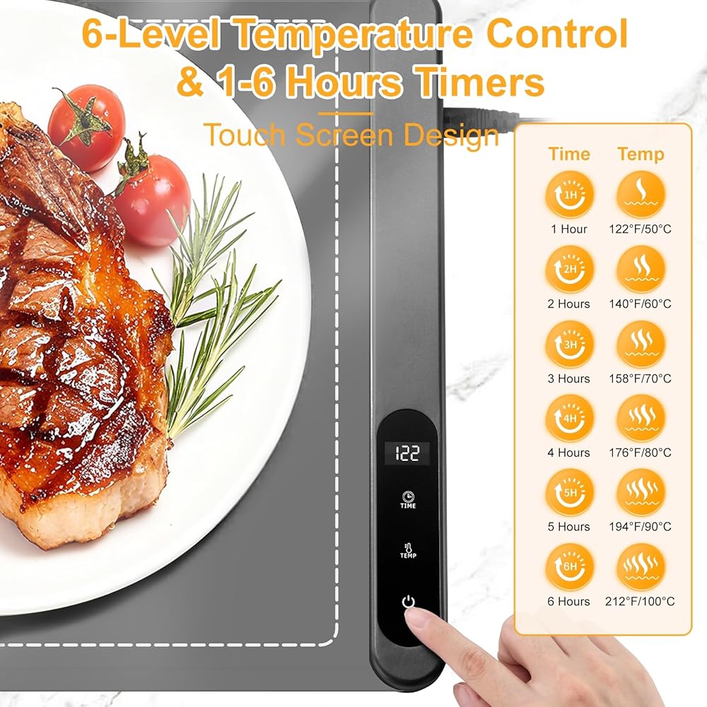 • 🎁【تصميم آمن وهدية مثالية للعائلة أو الأصدقاء 】تحتوي سجادة تدفئة الطعام مقاس XXL لدينا على زر شاشة تعمل باللمس للتحكم الدقيق في درجة الحرارة وتشغيل بسيط. (نصائح آمنة: بعد اكتمال التسخين، سيتم إيقاف تشغيله تلقائيًا إذا لم يكن هناك تشغيل لمدة 6 ساعات.) يعد سخان الطعام الكبير متعدد الأغراض هذا أيضًا خيارًا رائعًا للهدايا. إذا كان لديك أي أسئلة حول المنتج، يمكنك الاتصال بنا في أي وقت