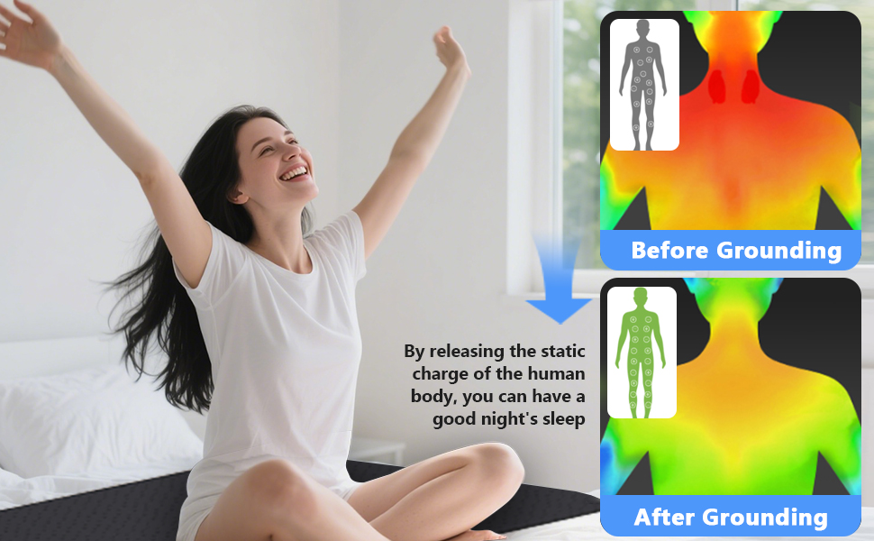 【استرخاء العضلات والعافية】تستخدم حصيرة التأريض للسرير الكربون الموصل لتوصيلك بالطاقة الطبيعية للأرض أثناء النوم. تدعم وسادة التأريض هذه استرخاء العضلات وتخفيف الألم والراحة العميقة بدون أدوية.