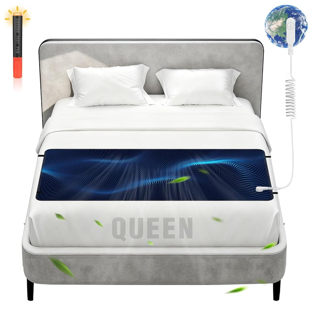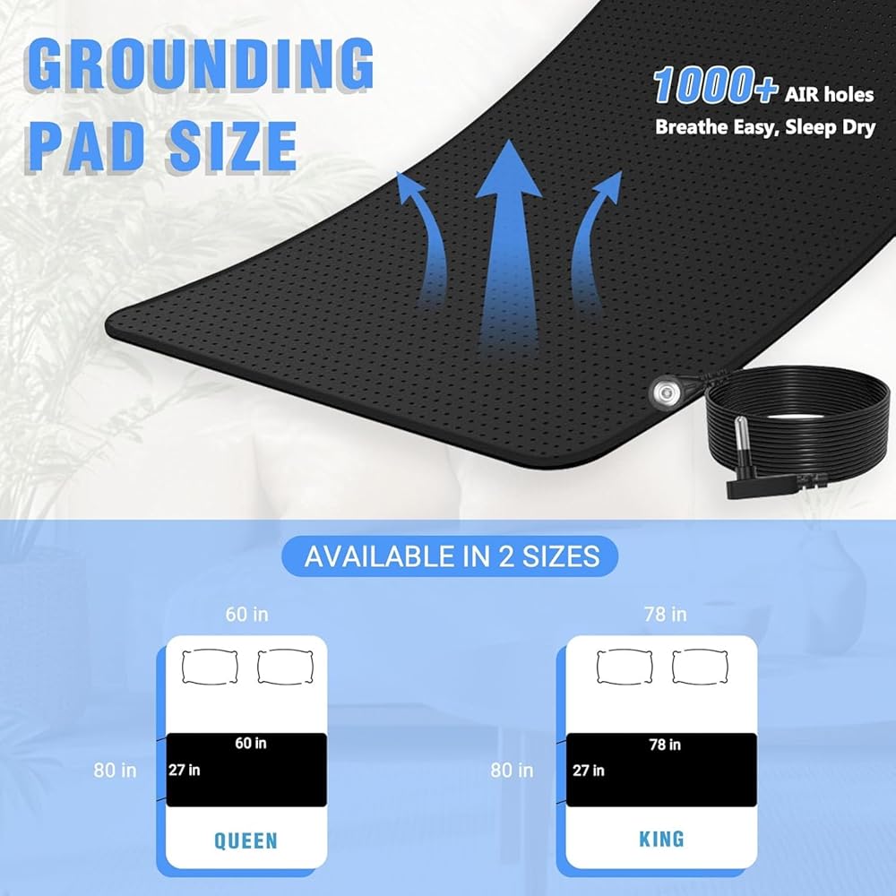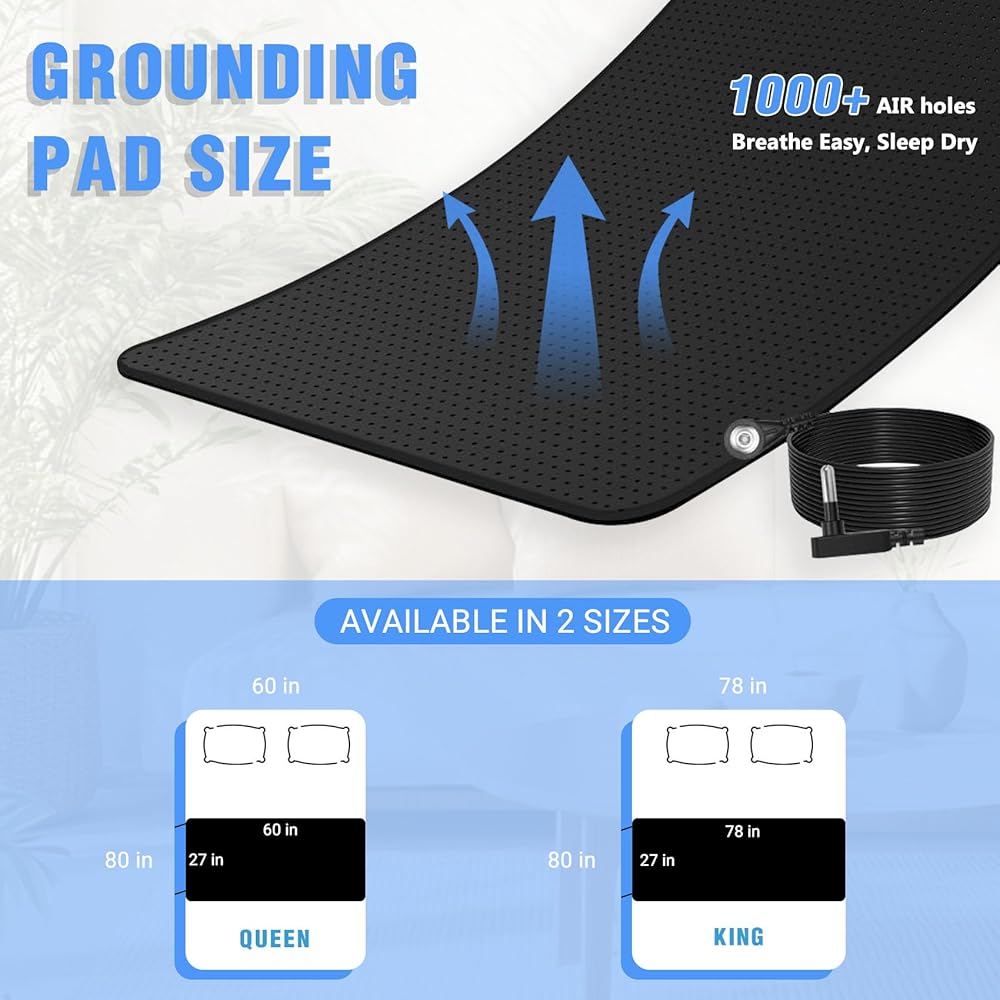 【نوم أفضل واستيقاظ منتعش】تناسب سجادة الأرضية الخاصة بنا للسرير مقاسات الملك والملكة والكامل والمزدوج. يمكن استخدام وسادة التأريض هذه تحت أو فوق ملاءتك المجهزة. ينام العملاء بشكل أسرع، ويستيقظون بألم أقل في العضلات، ويشعرون بالانتعاش الكامل.