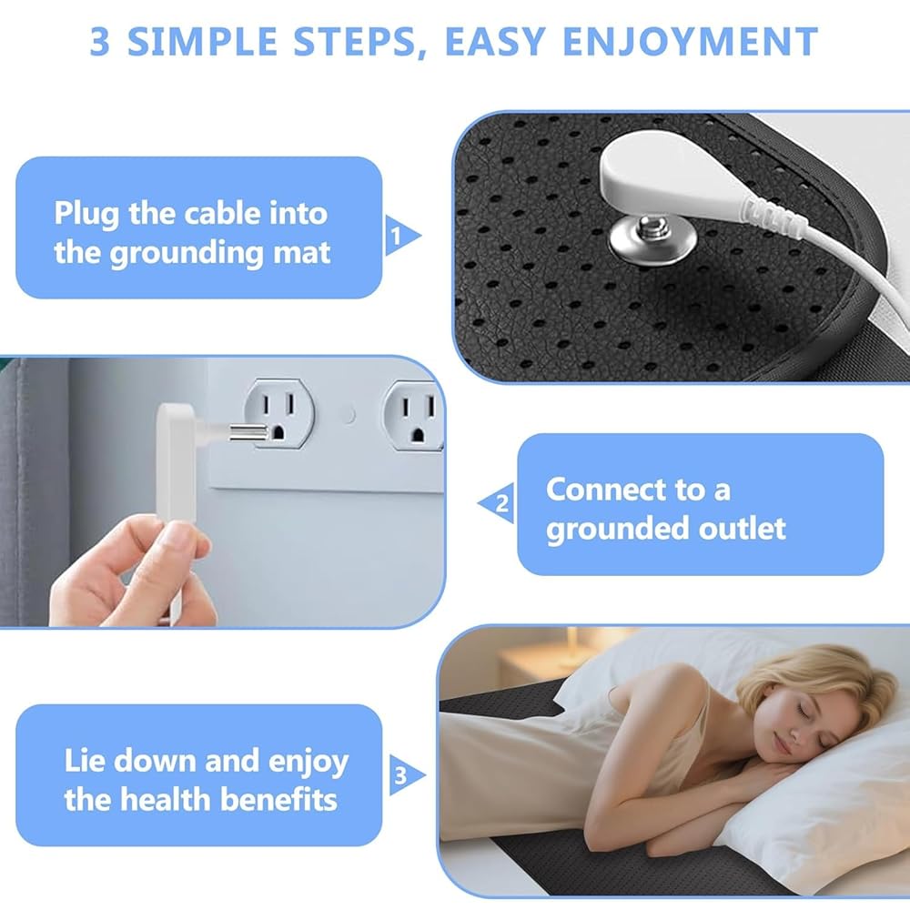 【إعداد سهل لمدة دقيقتين】ببساطة قم بإصلاح حصيرة التأريض للسرير باستخدام أشرطة مرنة، ثم قم بتوصيل السلك بطول 15 قدمًا، وقم بتوصيله بمنفذ مؤرض قياسي. لا حاجة إلى أدوات أو منافذ خاصة لوسادة التأريض هذه.
