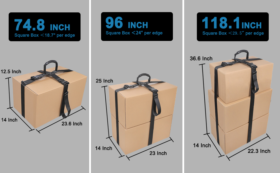 يتمتع حزام حمل الصندوق بسعة تحميل قصوى تصل إلى 110 رطل. يبلغ طول حزام الحمل 96 بوصة وعرضه 1.96 بوصة، مع تفاوت يتراوح بين ±1-2 سم