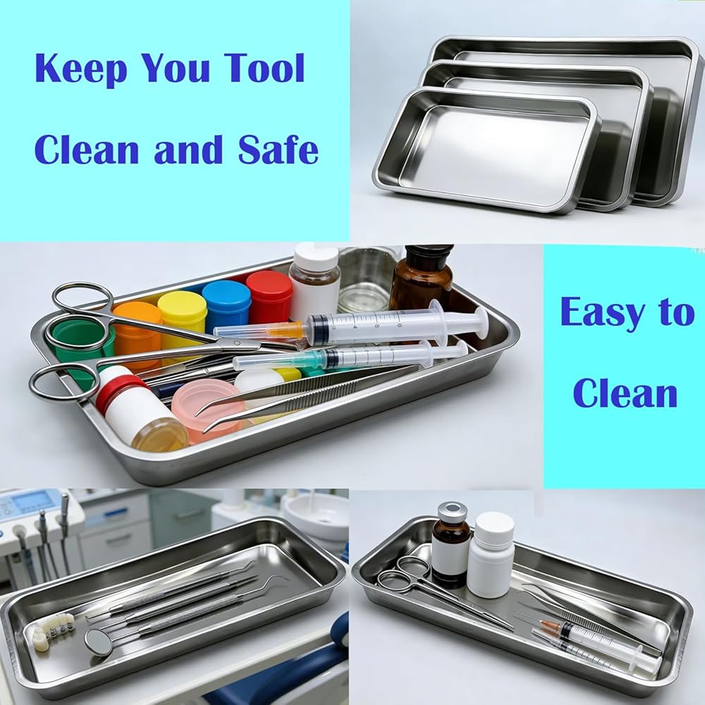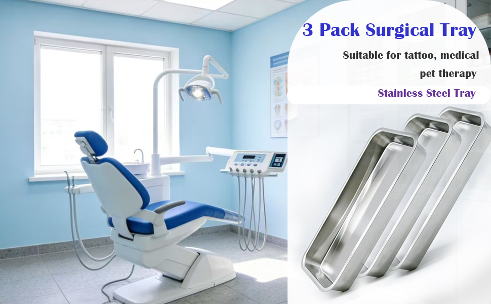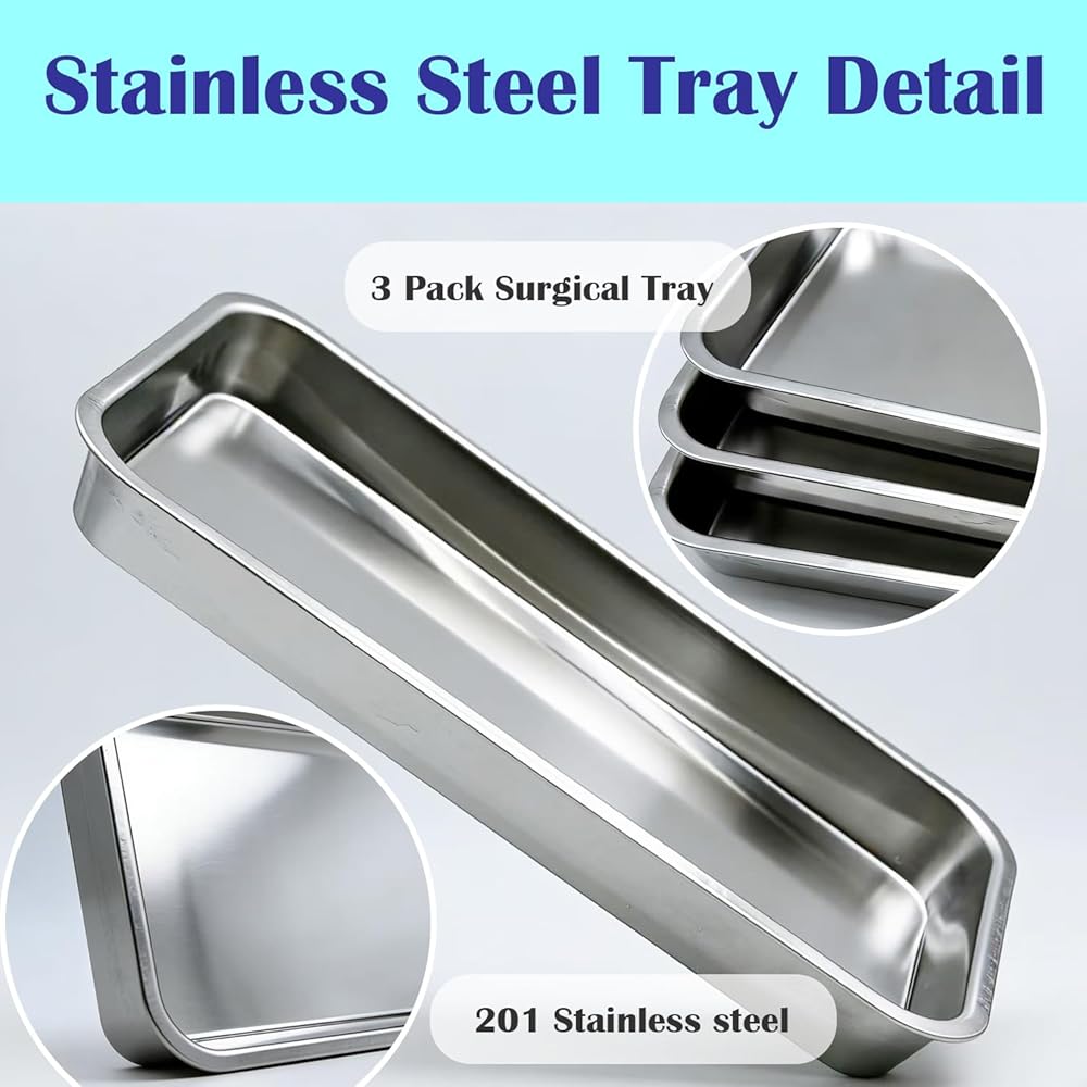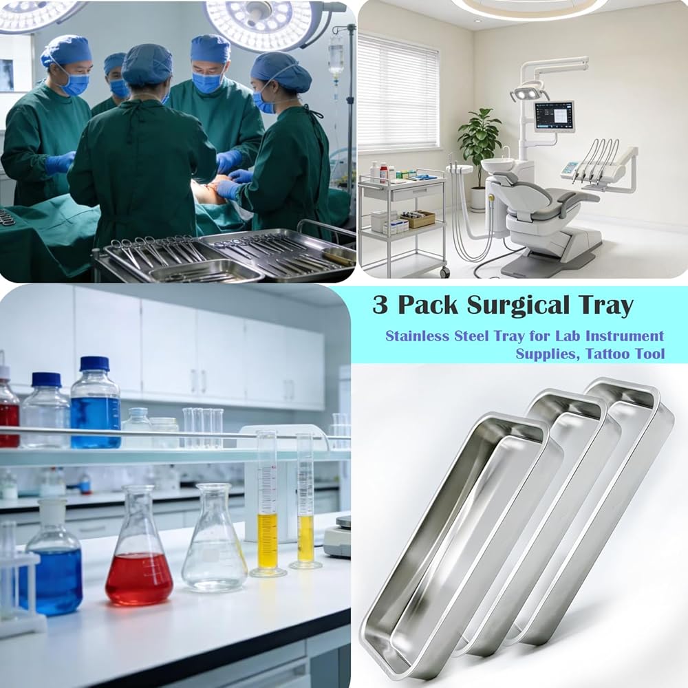 • متعددة الأغراض: 3 عبوات من صينية جراحية طبية احترافية مثالية للأسنان والمختبر والوشم والعلاج الطبي والحيوانات الأليفة. يمكن أيضًا استخدام الصينية المقاومة للصدأ كجهاز مطبخ، وصينية النتح، وصينية العشاء، وأدوات الخبز.