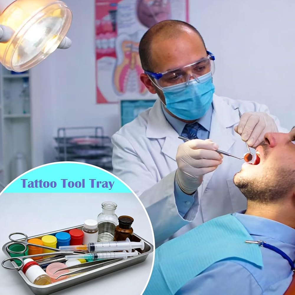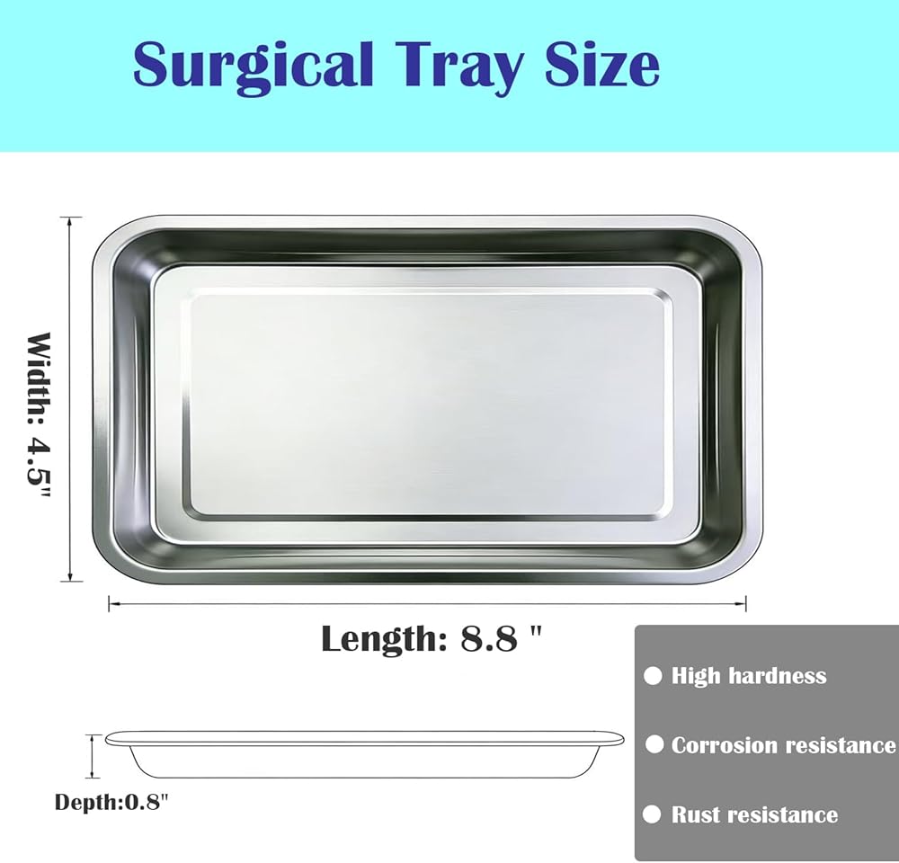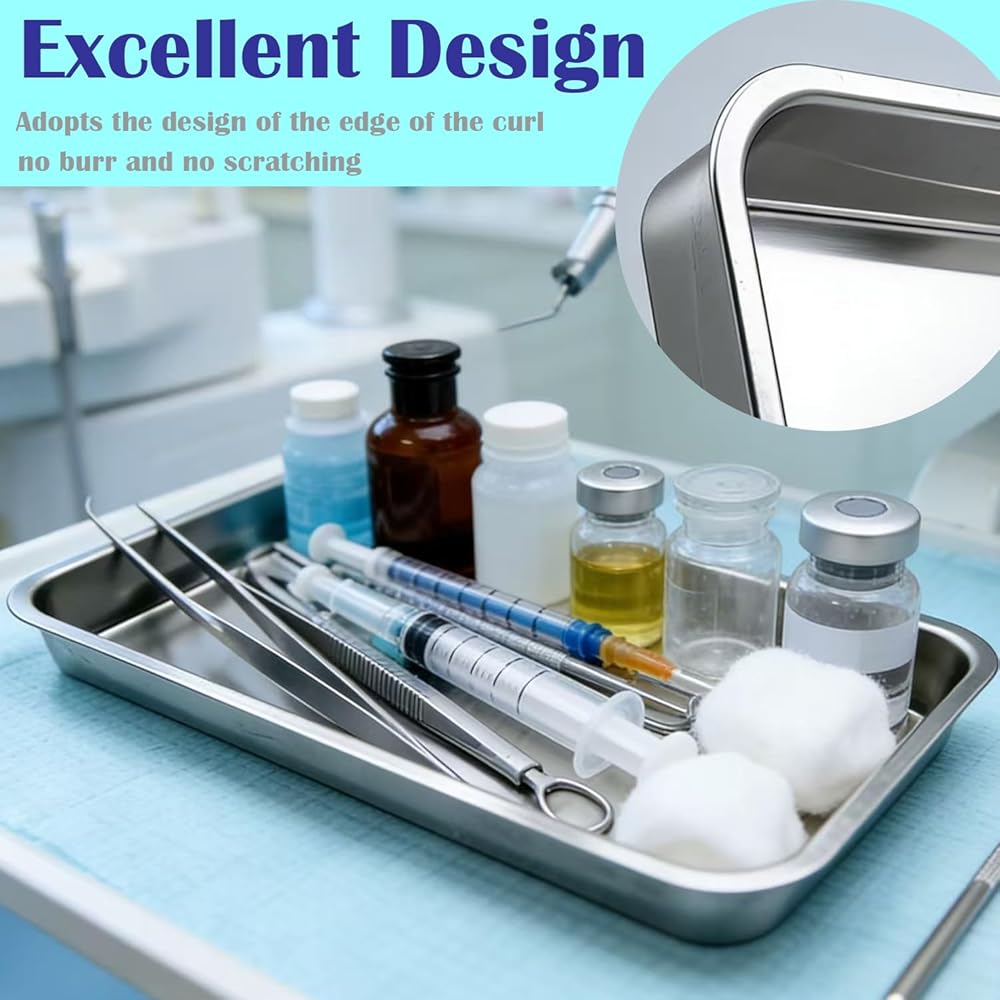 • متعددة الأغراض: 3 عبوات من صينية جراحية طبية احترافية مثالية للأسنان والمختبر والوشم والعلاج الطبي والحيوانات الأليفة. يمكن أيضًا استخدام الصينية المقاومة للصدأ كجهاز مطبخ، وصينية النتح، وصينية العشاء، وأدوات الخبز.