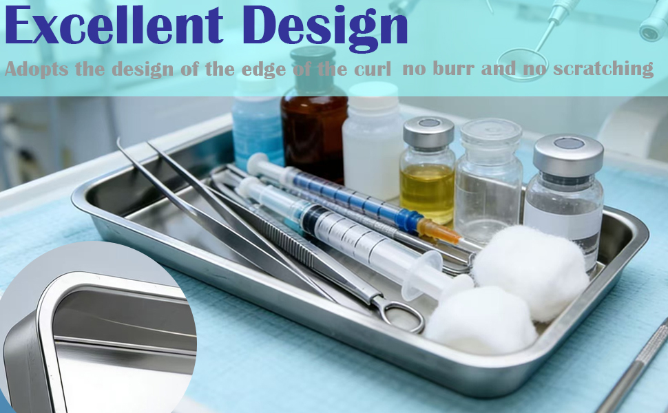 • تصميم ممتاز: تعتمد الصينية الجراحية على تصميم حافة التجعيد، وتمنع العناصر من السقوط بشكل فعال. لا تخدش يديك وسهلة التنظيف.