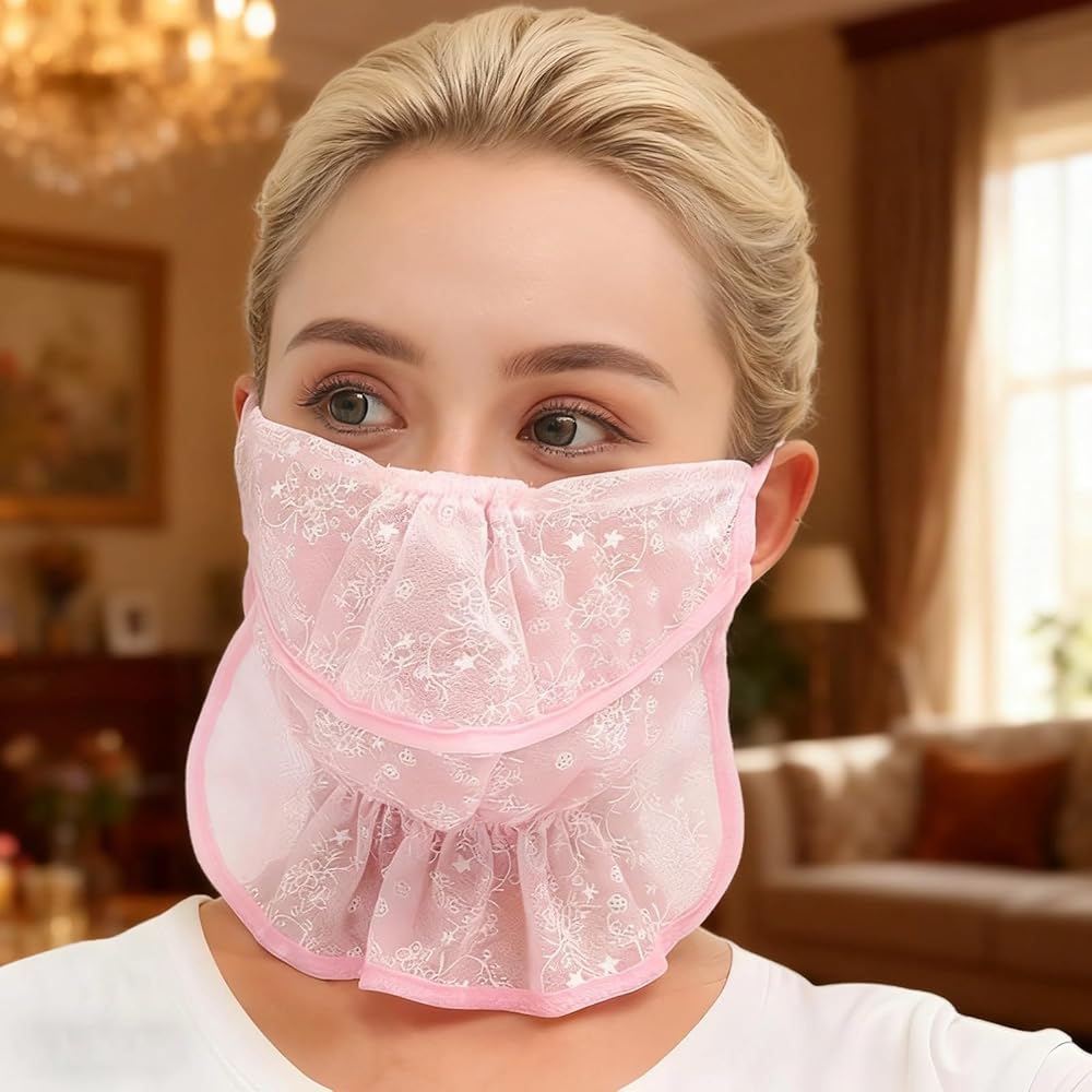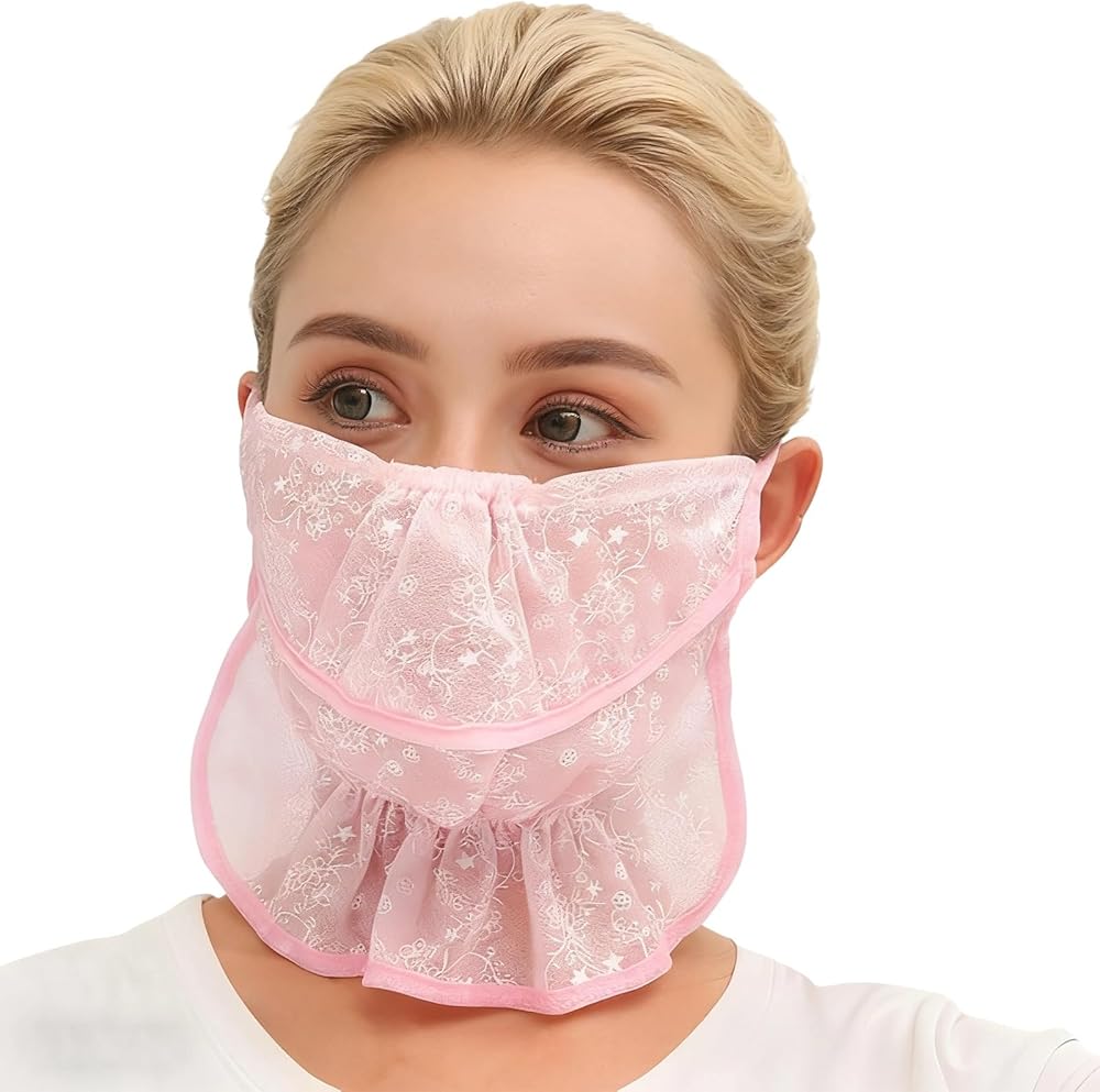Face covering mask color: Purple, khaki, pink, grey, pink Face mask material: Polyester, nylon, spandex Women face cover size: L*H: 22*21cm(8.66*8.27in) Package Includes: 1 x Face cover Note: - Please refer to the measurement. Tiny measuring error is allowable in normal range. - There might be a little color difference due to the monitor, camera or other factors, please refer to the physical item.