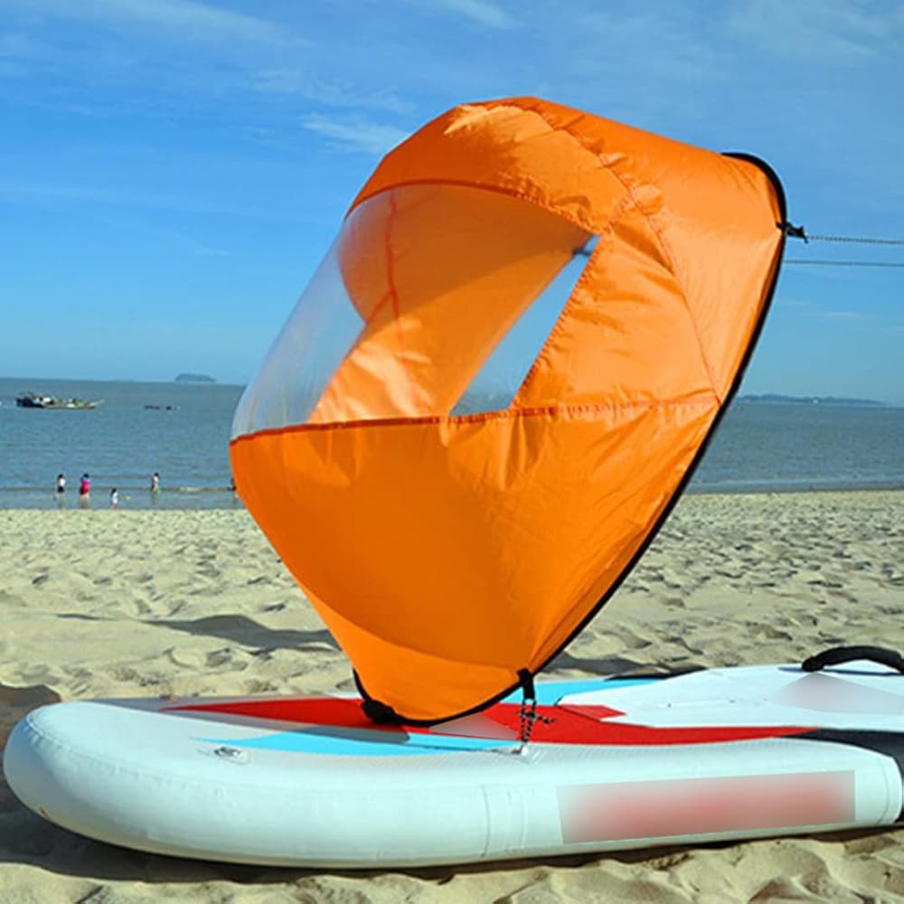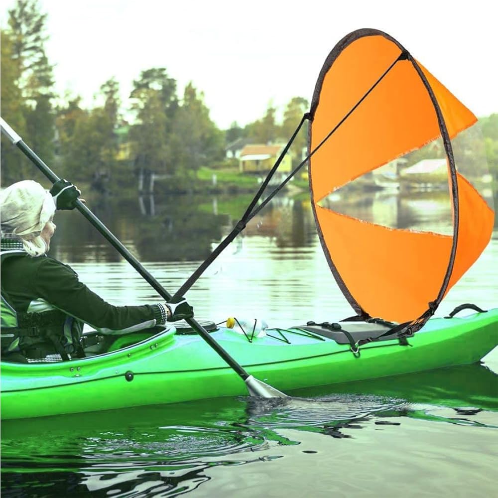 This wind paddle is designed for kayak, also applicable to canoes, Inflatables, boats, etc. It's easy to handle with a control strap that connects with your kayak. The wind paddle can be used for kayaks, inflatable boats, canoes, etc., easy to use, easy to set up and quick to deploy. Compact design: The kayak sail paddle adopts a compact design, which is easy to install and quickly deploy. Transparent window allows you to see what is behind the sail.