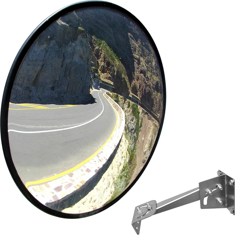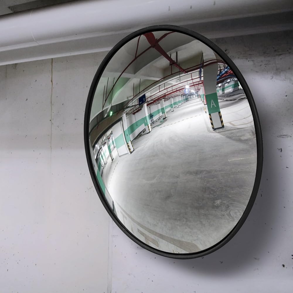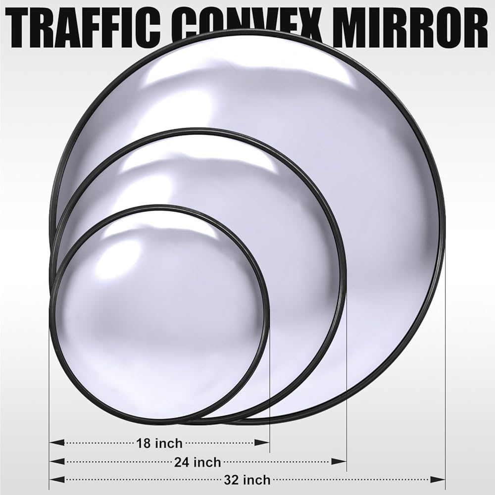 مرآة محدبة للسلامة المرورية مثبتة على الحائط مقاس 24 بوصة أو 32 بوصة، مرآة أمان مضادة للسرقة مع حامل عالي التحمل لمتجر البيع بالتجزئة، المرآب، المستودع، المكتب، موقف السيارات (1، 24 بوصة كبير)