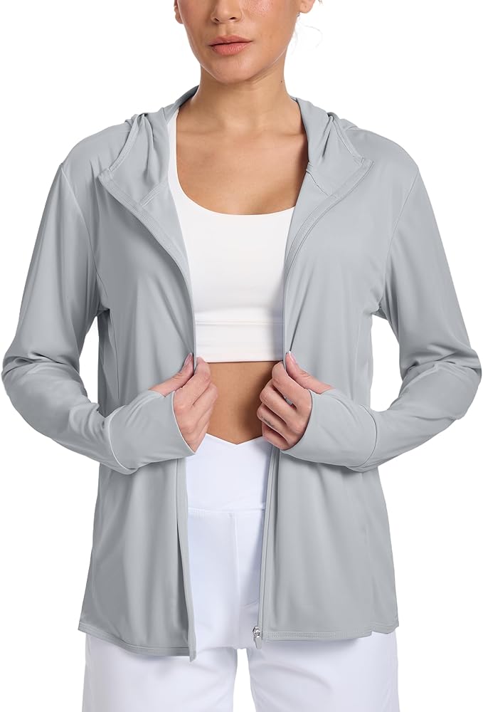 حماية من أشعة الشمس بعامل حماية من أشعة الشمس 50+: يوفر هذا القميص الواقي من أشعة الشمس بعامل حماية من أشعة الشمس 50+ دفاعًا فائقًا ضد الأشعة فوق البنفسجية الضارة. يضمن التصميم ذو القلنسوة المزود بفتحات الإبهام تغطية كاملة، دون ترك أي فجوات لاختراق الأشعة فوق البنفسجية.