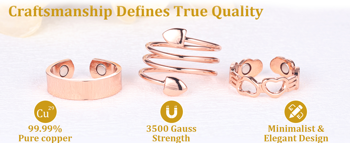 Ultra Strong Magnetism - The copper rings for women are embedded with 2 pcs/ 4pcs neodymium magnets, each magnet has a strength of 3500 Gauss deliver strong yet comfortable effect. A stylish way to improve energy flow while adding a chic touch to your look.