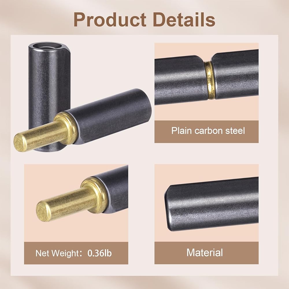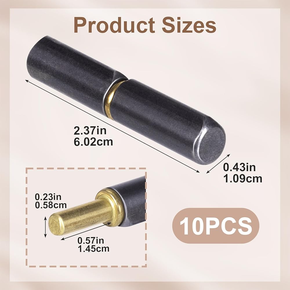 Lekgavd 10PCS Adjustable Weld on Hinges, 2-1/2 in (6.02 cm) Detachable Bullet Shape Heavy Duty Hinges, Carbon Steel Rotating Barrel Hinges for Metal Gate, Trailer Ramp
