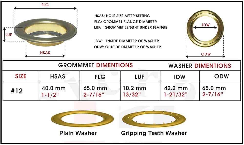 • COMPLETE MATCHED SETS: Includes grommets + washers as a set for consistent installs and a clean finished look (pack count depends on size: #12/#15 = 100 sets, #18 = 12 sets).