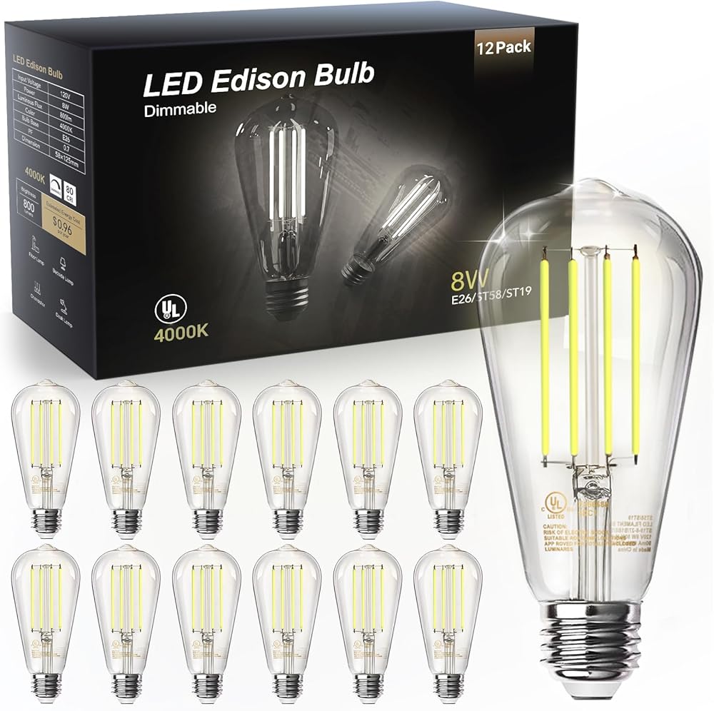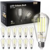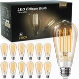 tjoy 12 حزمة خمر 8 واط st58 أدى اديسون المصابيح الكهربائية، عكس الضوء، ما يعادل 60 واط، 800 لومن، 2700 كيلو الأبيض الدافئ، e26 قاعدة خيوط لمبة ليد، CRI80 +، نمط الزجاج العتيقة للمنزل، غرفة نوم، مكتب، مزرعة in Kuwait