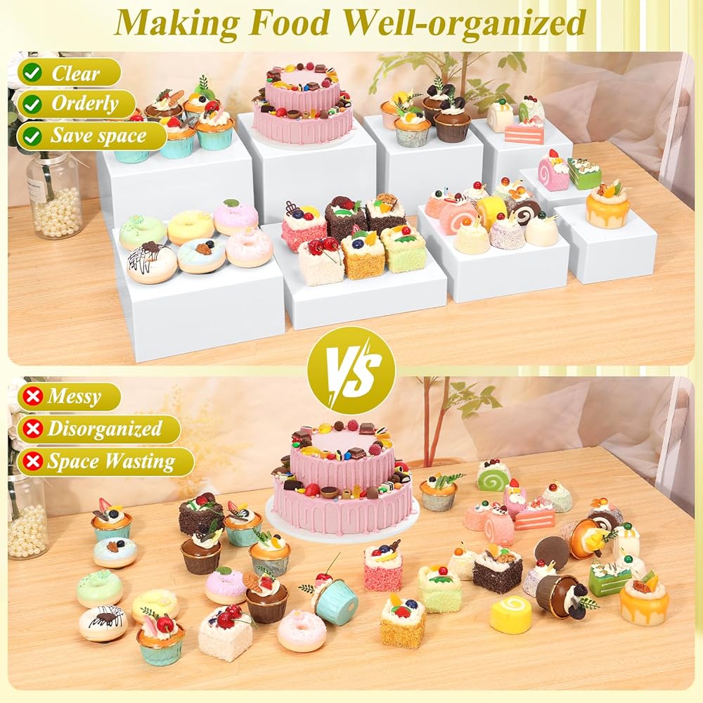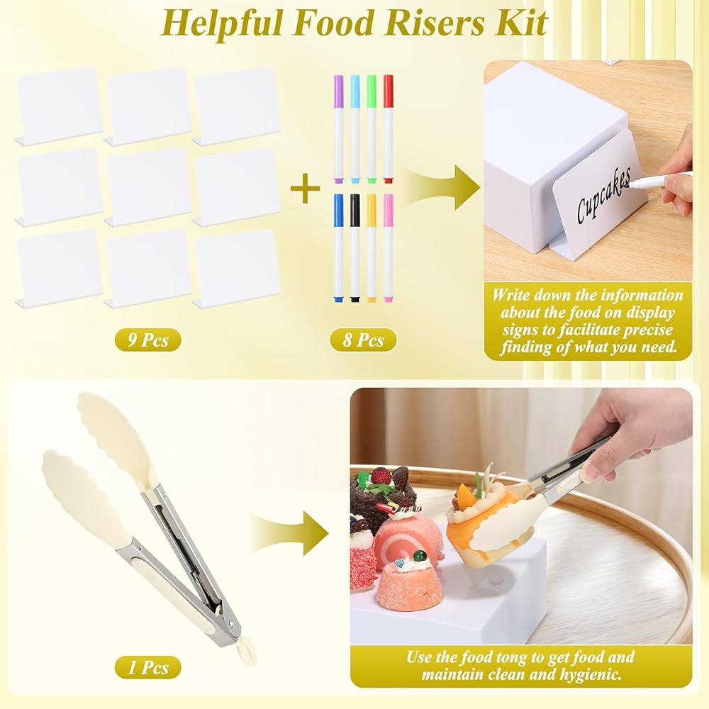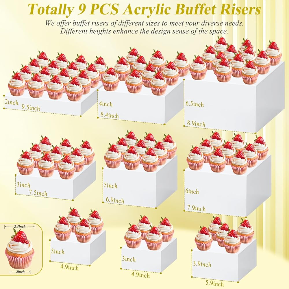 9 قطع من حاملات وحوامل البوفيه البيضاء | رافعات عرض الطعام لطاولة البوفيه | ستاندات أكريليك مع لافتات وأقلام | صناديق مكعبة للحفلات، أعياد الميلاد، الزفاف، تقديم الطعام، التشكيلة | الحجم 10''-9''-8''-7''-6''-5''