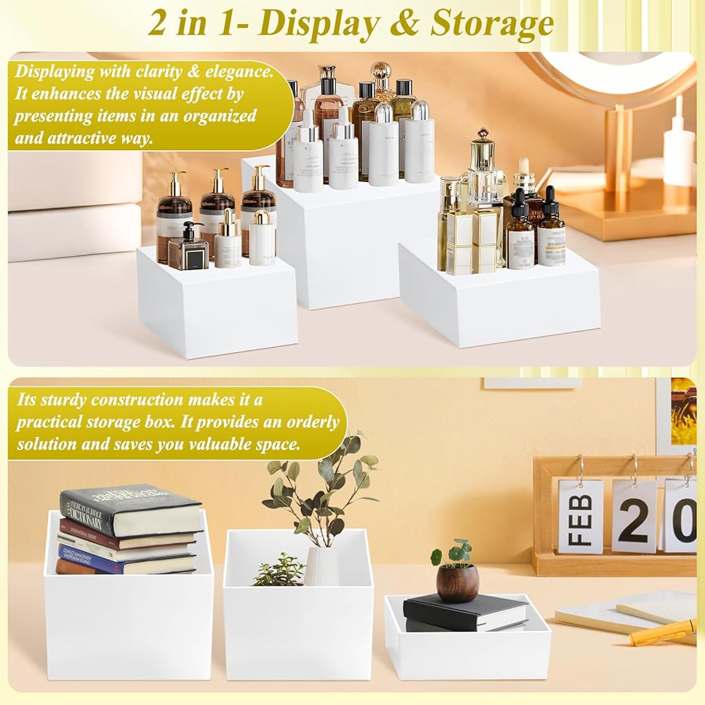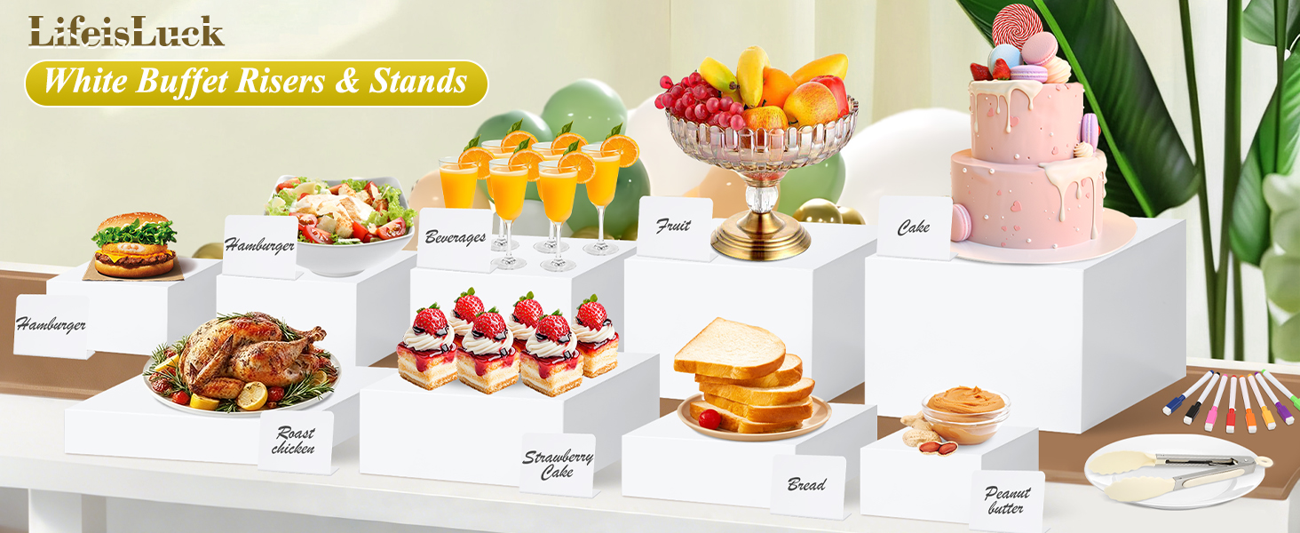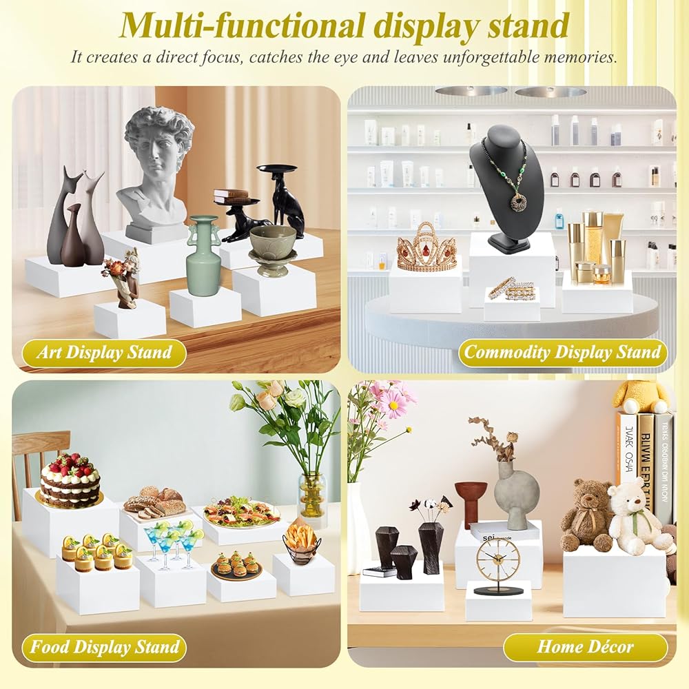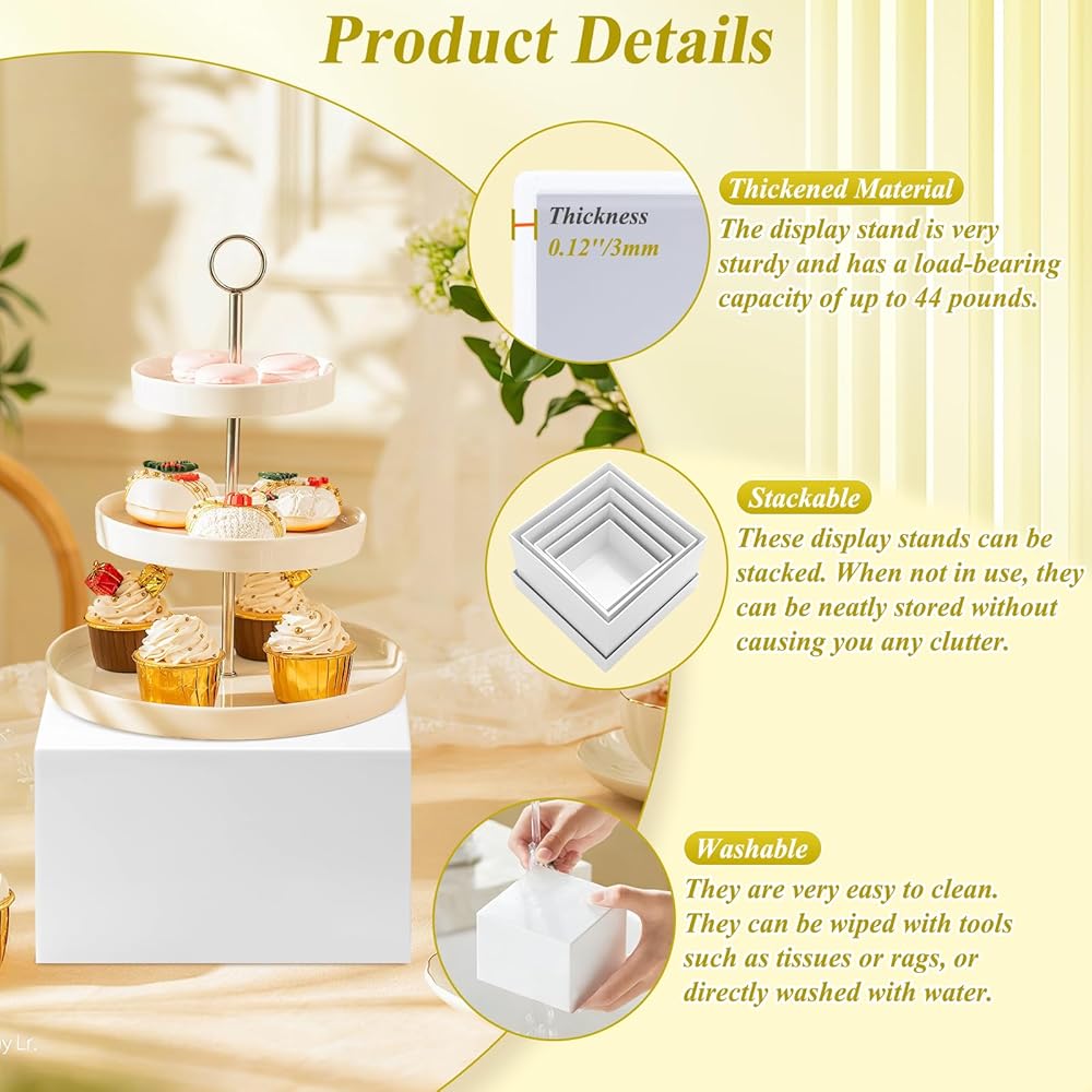 9 قطع من حاملات وحوامل البوفيه البيضاء | رافعات عرض الطعام لطاولة البوفيه | ستاندات أكريليك مع لافتات وأقلام | صناديق مكعبة للحفلات، أعياد الميلاد، الزفاف، تقديم الطعام، التشكيلة | الحجم 10''-9''-8''-7''-6''-5''