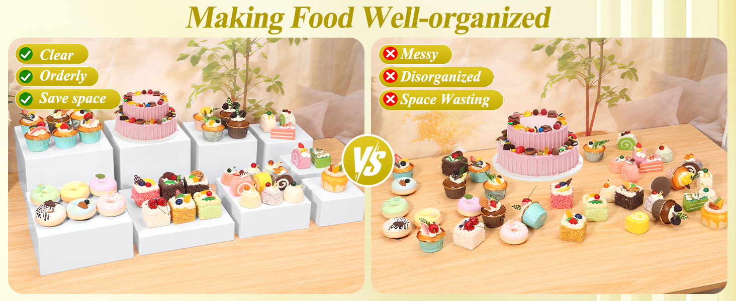【حامل عرض متعدد الوظائف】يمكن استخدام رافعات وحوامل البوفيه هذه لعرض مجموعة واسعة من العناصر، بما في ذلك الحلويات والمشروبات والمقبلات والمجوهرات والمقتنيات ومستحضرات التجميل والديكور المنزلي والمزيد. سواء كنت تستضيف عشاء عائلي حميم، أو حفل زفاف كبير، أو تجمع شركة، أو حفلة عطلة احتفالية، فإن هذه الحوامل تضيف لمسة من الارتفاع الراقي. كما أنها مثالية لمتاجر المجوهرات والمخابز والمعارض الفنية ومحلات البوتيك والمنزل
