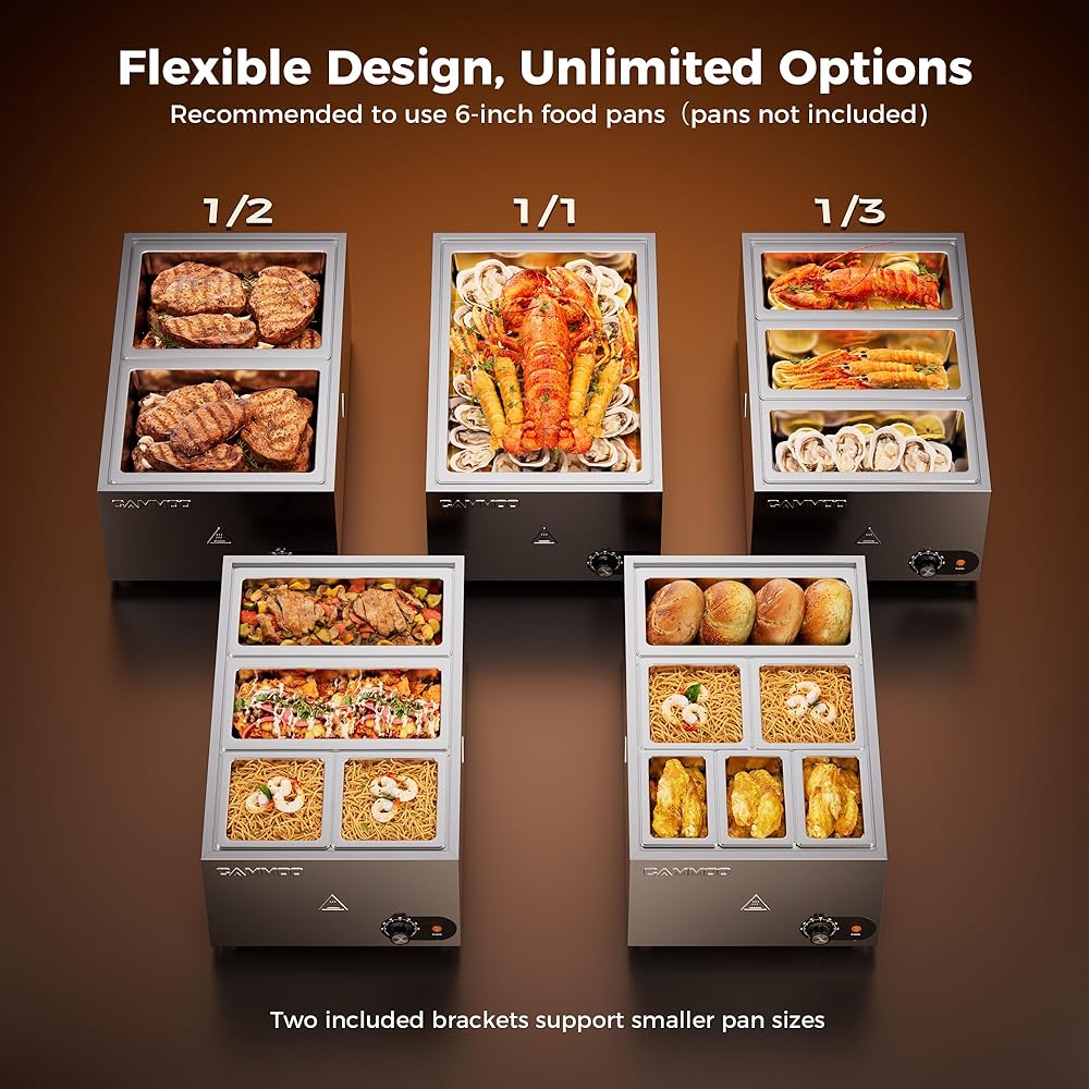 جهاز تدفئة الطعام بالبخار الكهربائي بقدرة 1200 واط، باين ماري 86-185 درجة فهرنهايت درجة حرارة قابلة للتعديل، بخار بوفيه من الفولاذ المقاوم للصدأ على سطح الطاولة، جهاز بخار الطعام التجاري لتقديم الطعام في المطاعم