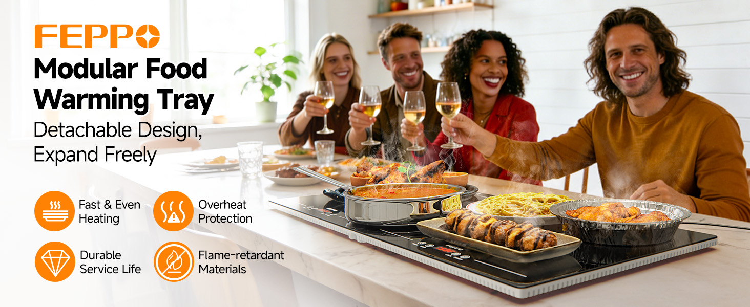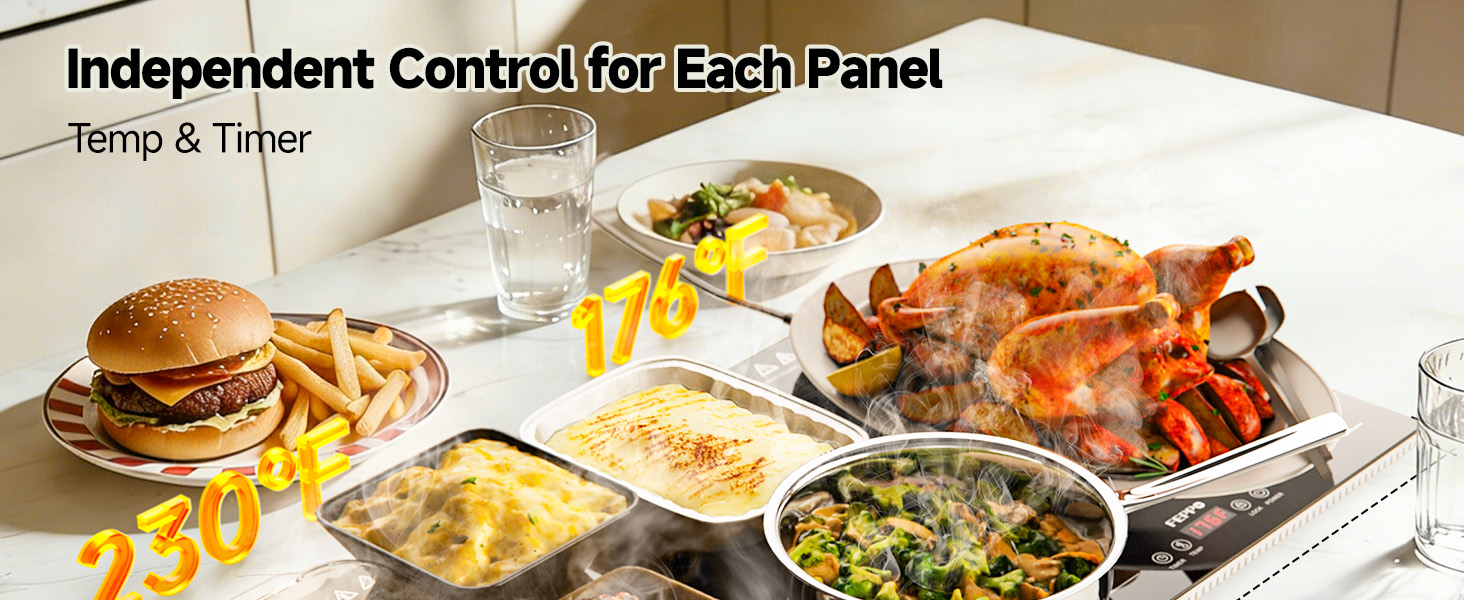 التحكم المستقل في درجة الحرارة والمؤقت: تتيح لك صينية التسخين الكهربائية المطورة ضبط درجة الحرارة ووقت التشغيل بشكل مستقل عن طريق اللوحة، لذلك يمكن للأطباق المختلفة أن تبقى في دفء تقديم مختلف في نفس الوقت - مثالية للحفلات ووجبات العطلات والتقديم على طراز البوفيه دون إعادة التسخين المستمر أو قيود الإعداد الواحد.