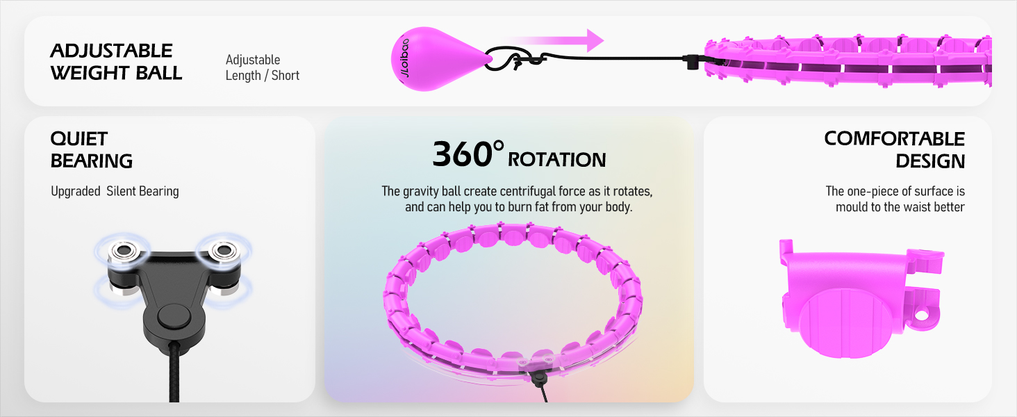 2. 360-Degree Slimming: Smart weighted exercise hoop can burn fat quickly. Doing 30 minutes exercise per day can burn about 600 calories, recommend to use it 5 times per week.