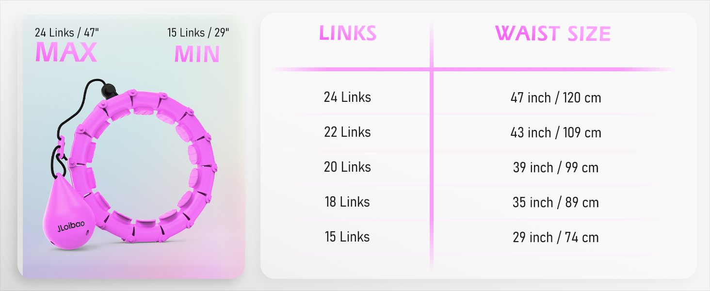 4. 24 Adjustable Links: The 24-links smart hoop can be freely connected or detached according to your waistline.