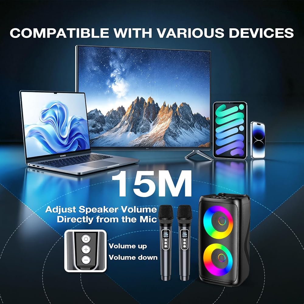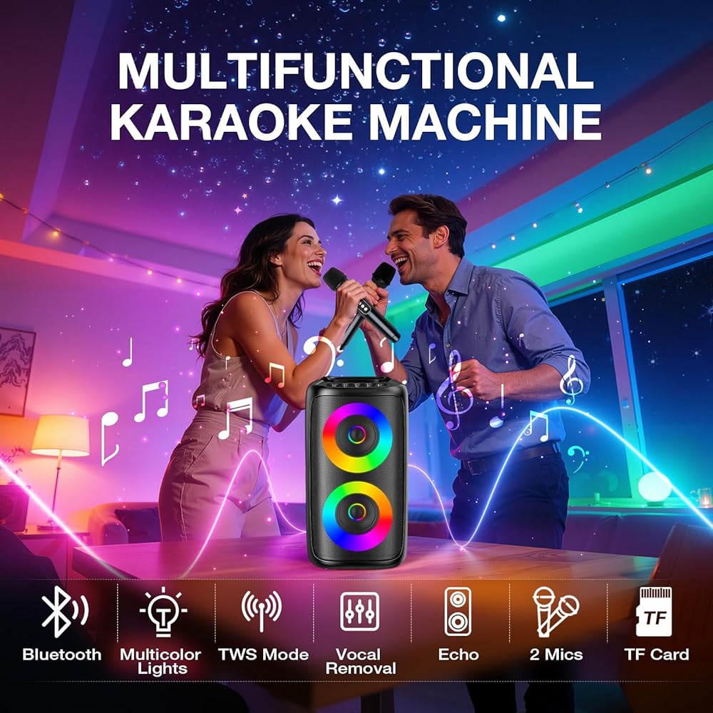 Idal Gift for Any Occasion: Our karaoke machine with 2 wireless microphones makes a unique and unforgettable gift for adults, kids, family, and friends. Ideal for birthdays, Christmas, holidays, or special moments—it's more than a gift, it's a reason to laugh, sing, and create lasting memories together